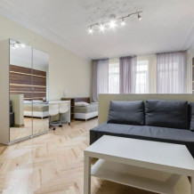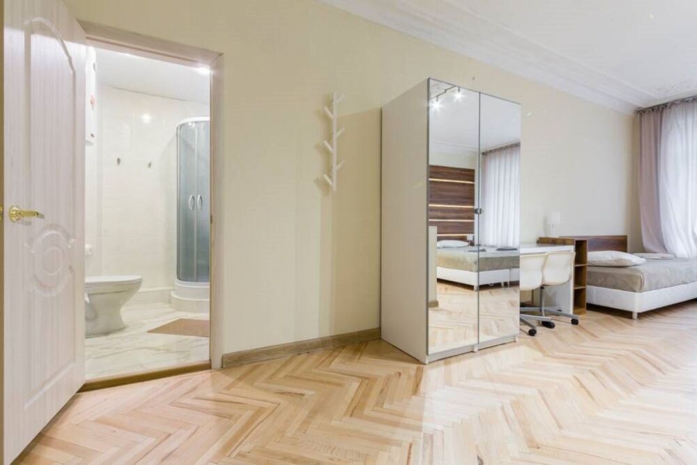 Светлые и просторные пятикомнатные апартаменты расположены на одной из самых известных улиц Санкт-Петербурга, всего в нескольких минутах ходьбы от канала Грибоедова и Сенной площади.