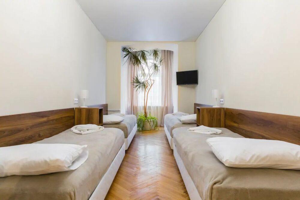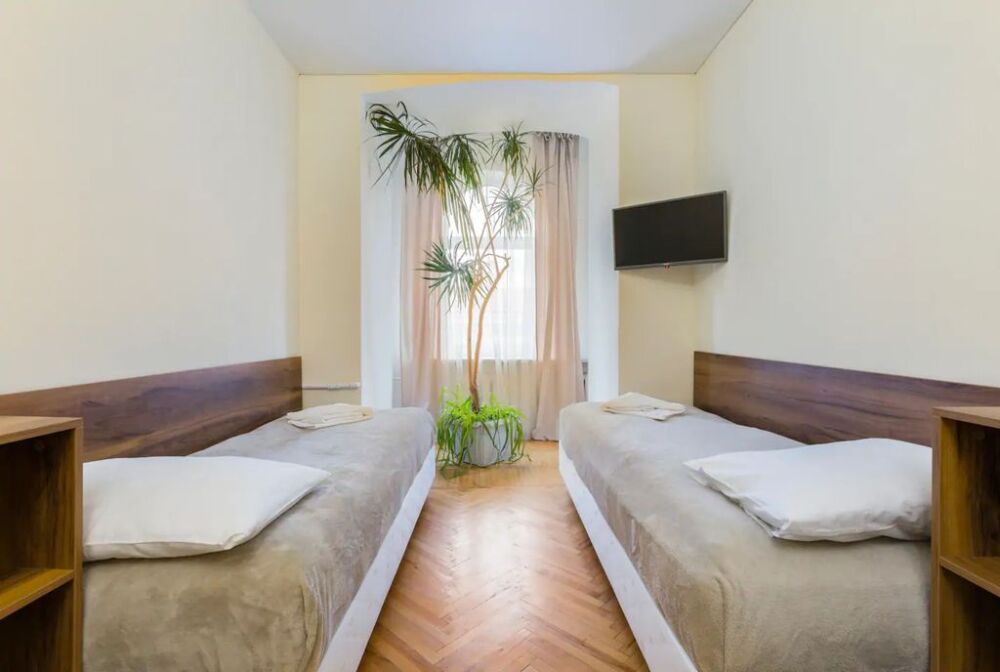 Каждая комната оснащена кроватями, телевизором и Wi-Fi.