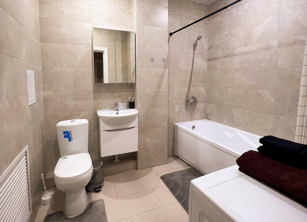 В квартире есть все, что нужно для комфортного проживания: двуспальная кровать, раскладной диван, постельное белье и полотенца, посуда, микроволновка, телевизор, Wi-Fi, холодильник.
