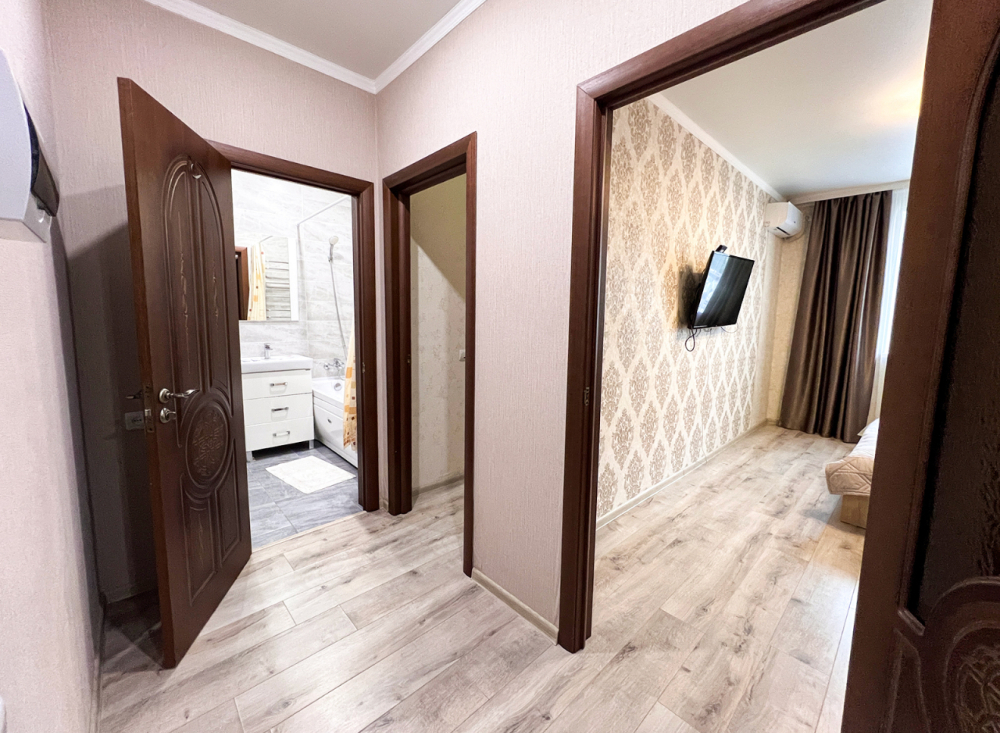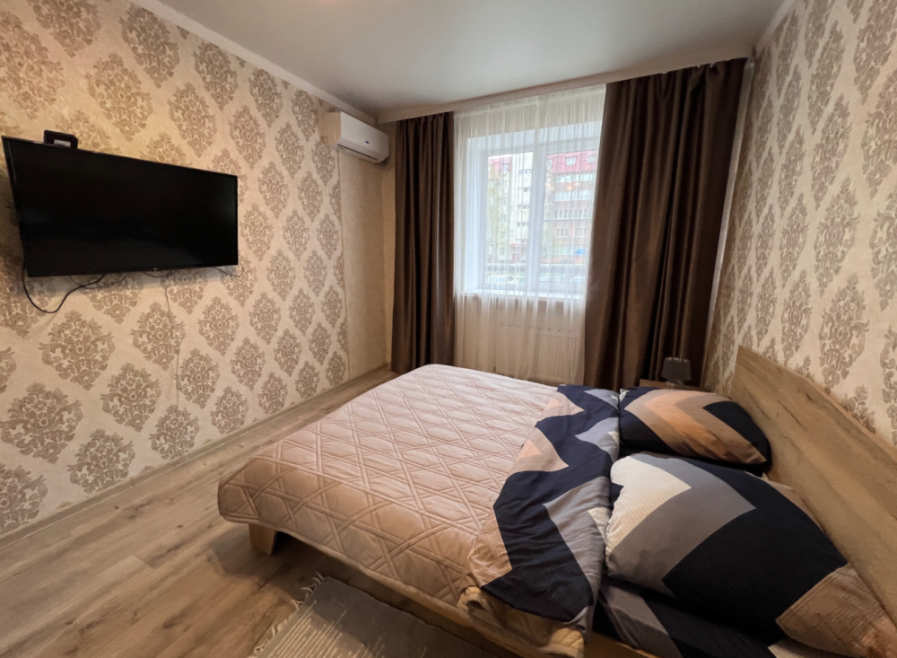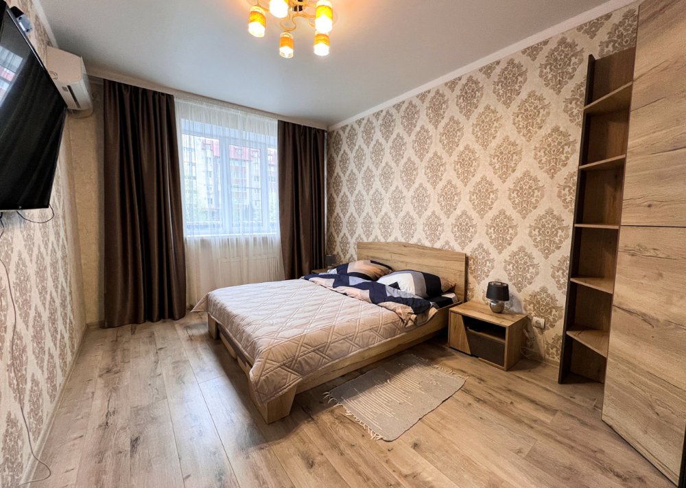 В квартире есть все, что нужно для комфортного проживания: двуспальная кровать, постельное белье и полотенца, посуда, микроволновка, телевизор, Wi-Fi, холодильник.