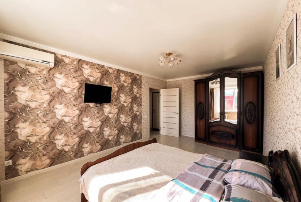 В квартире есть все, что нужно для комфортного проживания: двуспальная кровать, постельное белье и полотенца, посуда, микроволновка, телевизор, Wi-Fi, холодильник.