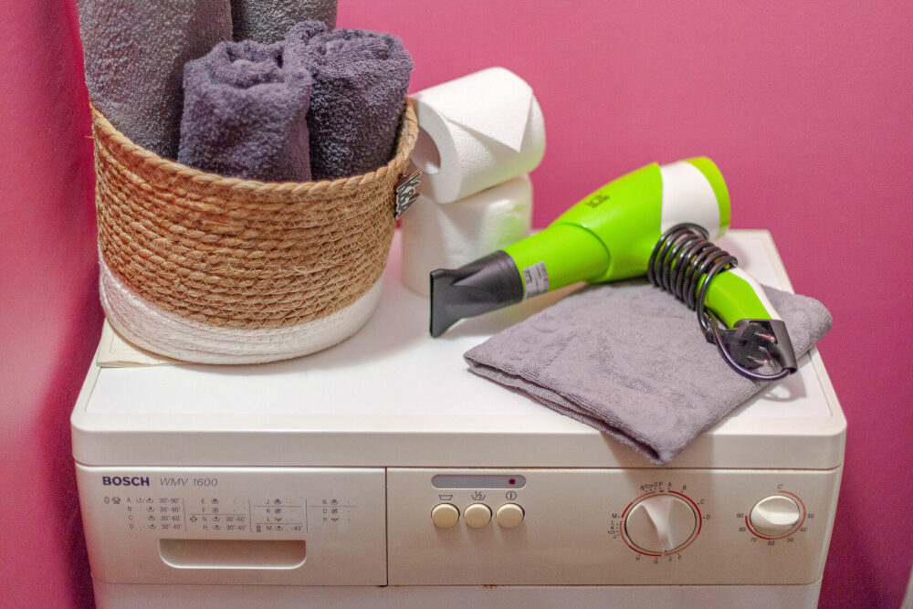 - Стиральная машина, фен, утюг, гладильная доска, сушилка для одежды