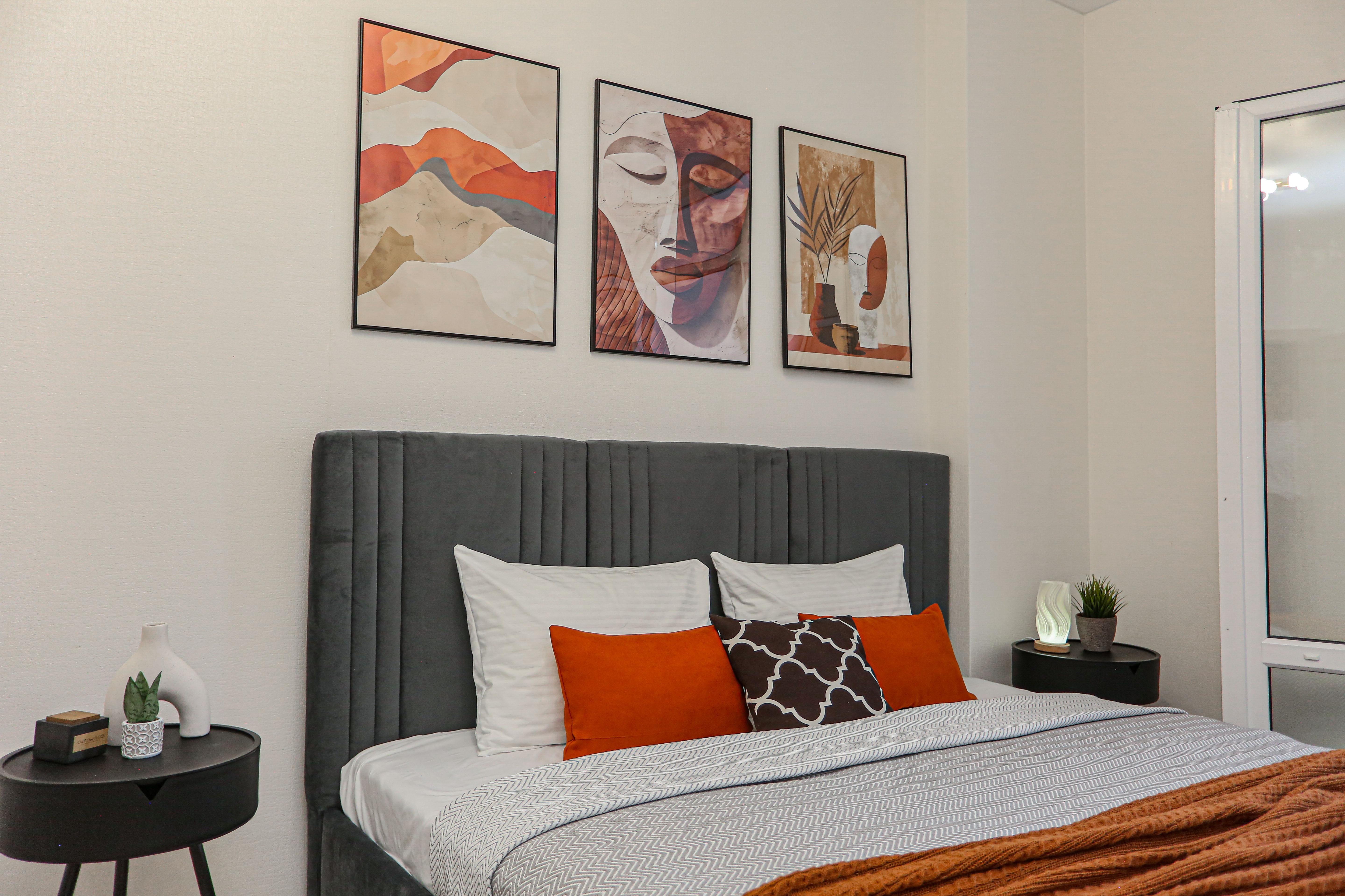 Широкая двухспальная кровать с ортопедическим матрасом, шторы блек-аут, свежее хлопковое бельё, идеальная чистота, средства гигиены - всё для Вашего комфорта!