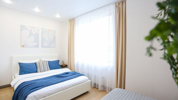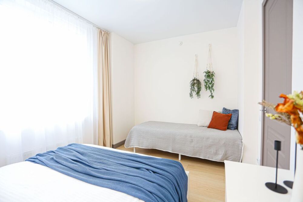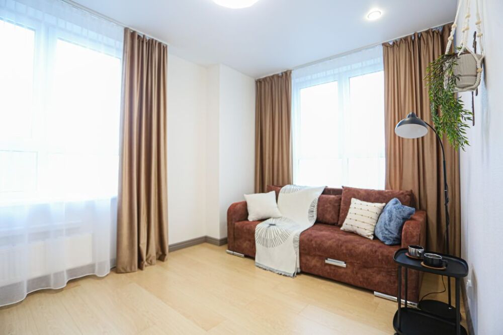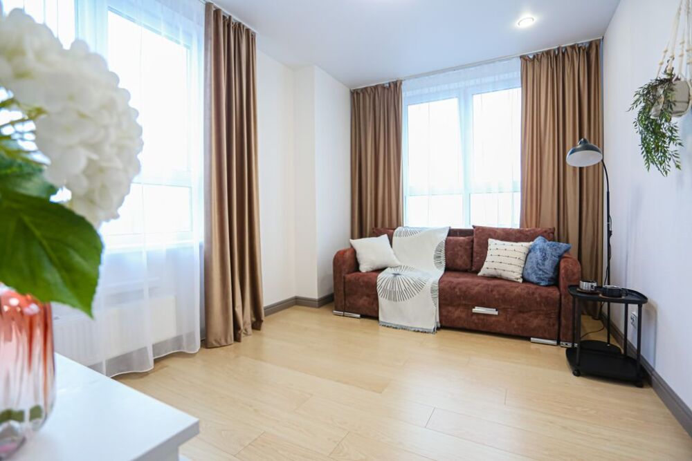 Зал с раскладным широким диваном и спальня с 2-спальной кроватью с ортопедическим матрасом и 1.5 спальной кроватью.