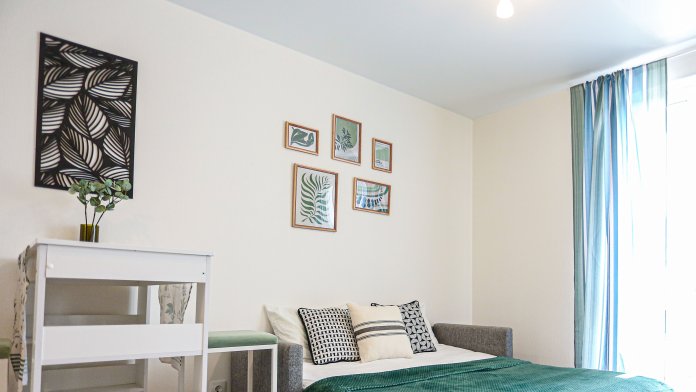 Двухспальный диван с мягким матрасом и разместят 2 гостей.