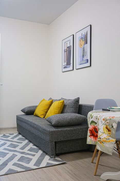 Размещение 2 + 2, с двумя комфортными спальными местами, двухспальная кровать с ортопедическим матрасом и раскладным двухспальным диваном.