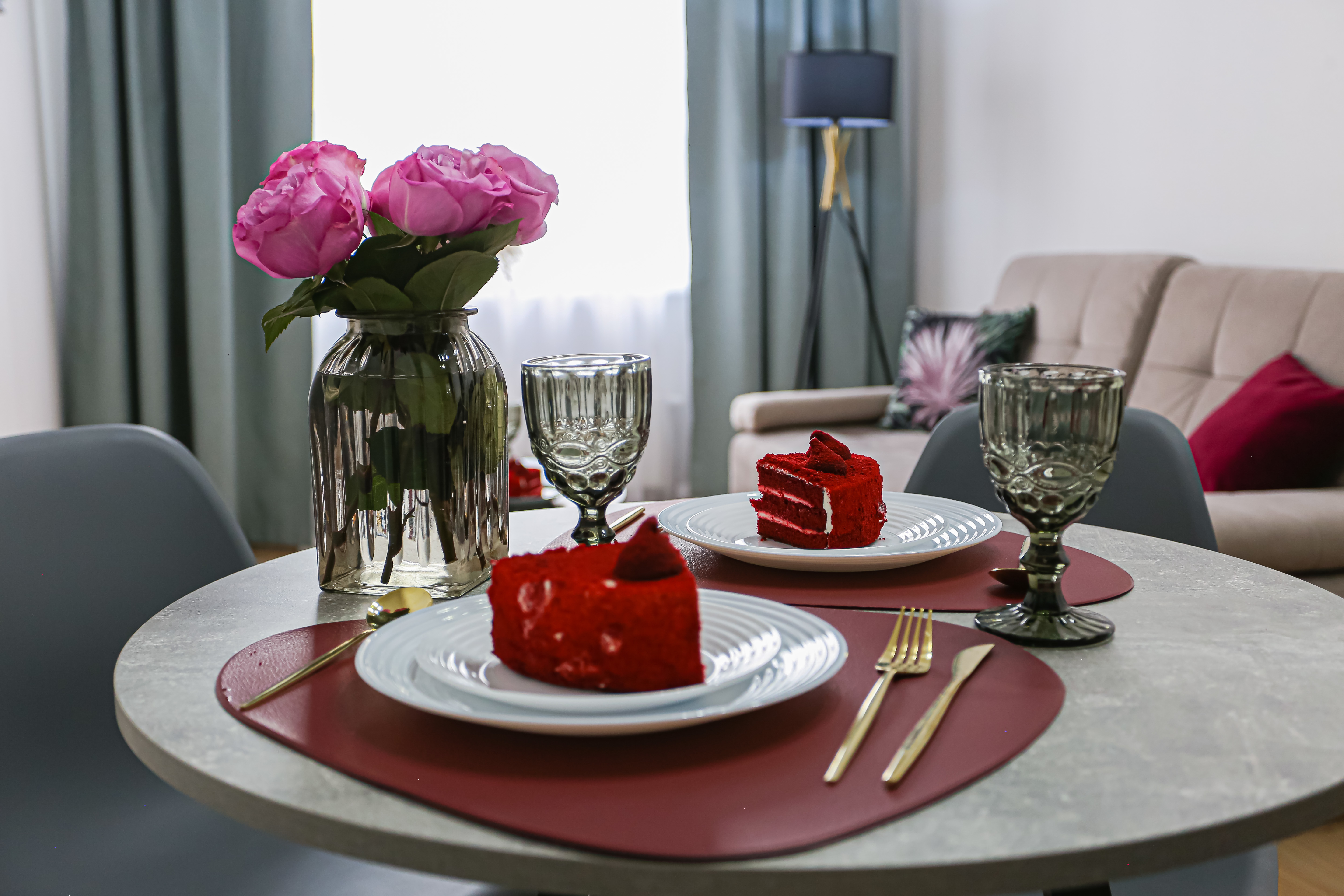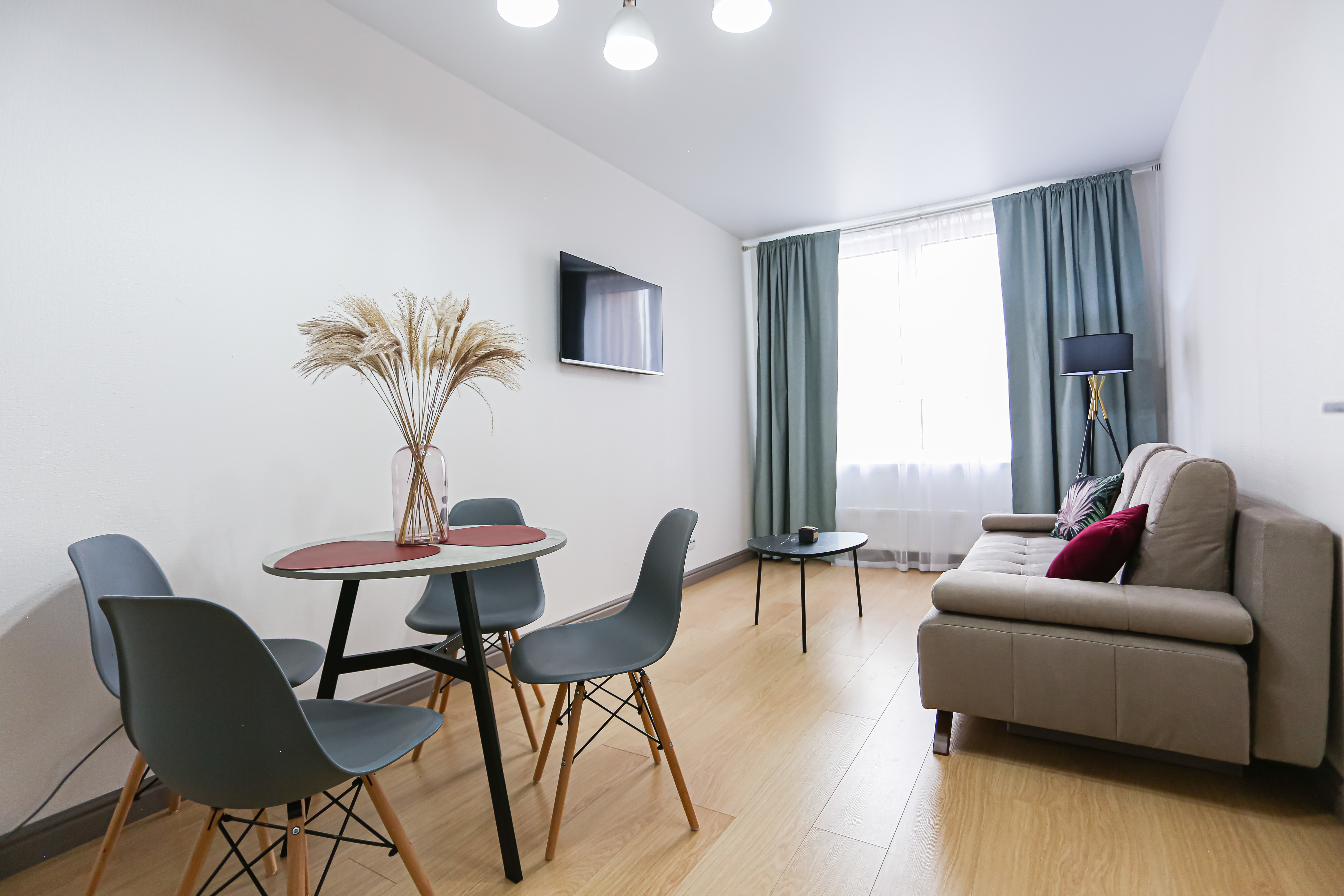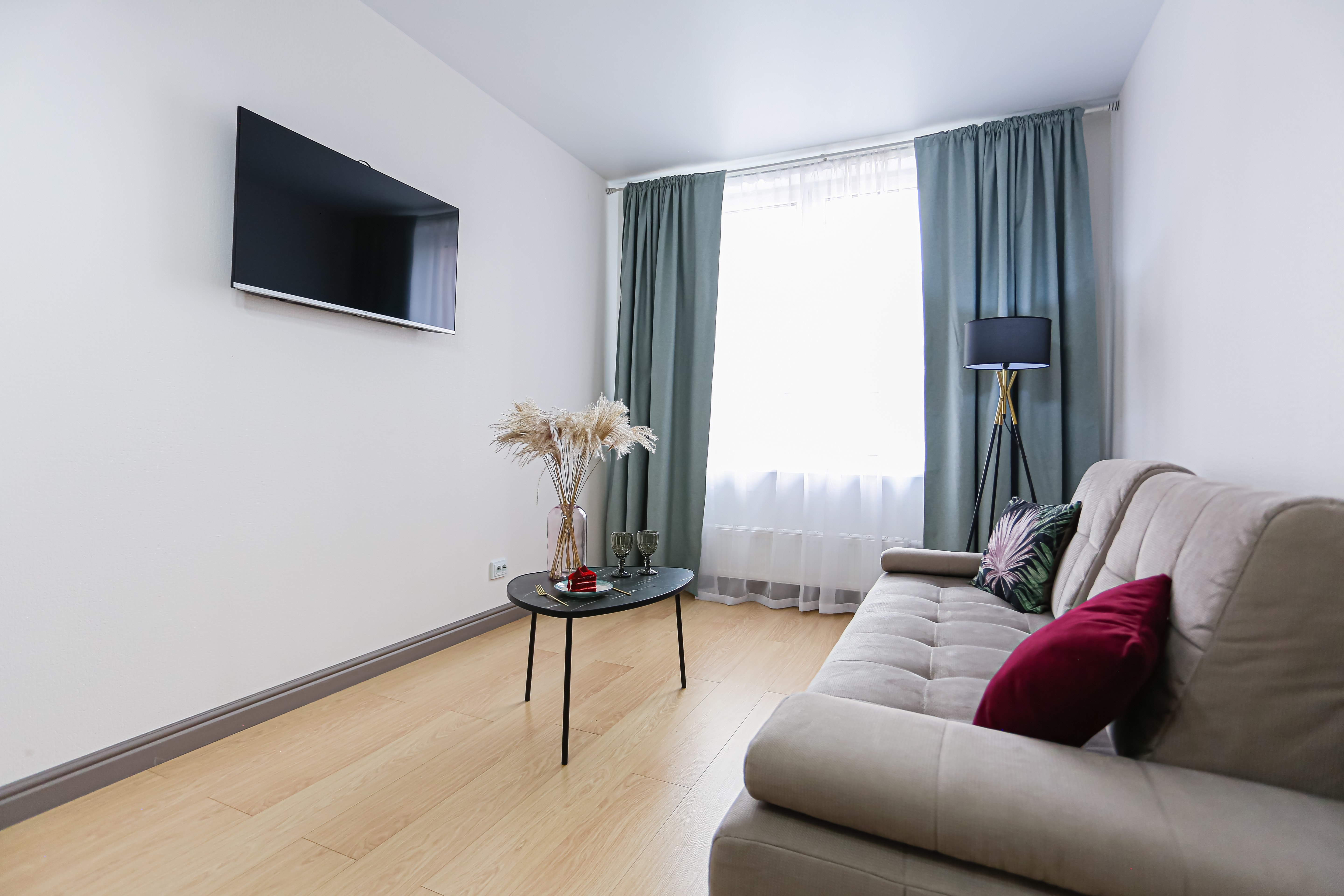 Идеальная чистота в квартире, красивое и свежее постельное бельё и полотенца, красивая посуда.