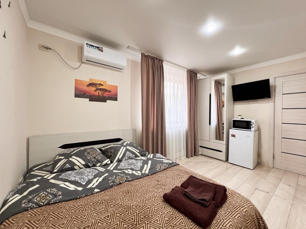 В квартире есть все, что нужно для комфортного проживания: двуспальная кровать, постельное белье и полотенца, посуда, микроволновка, телевизор, Wi-Fi, холодильник.
