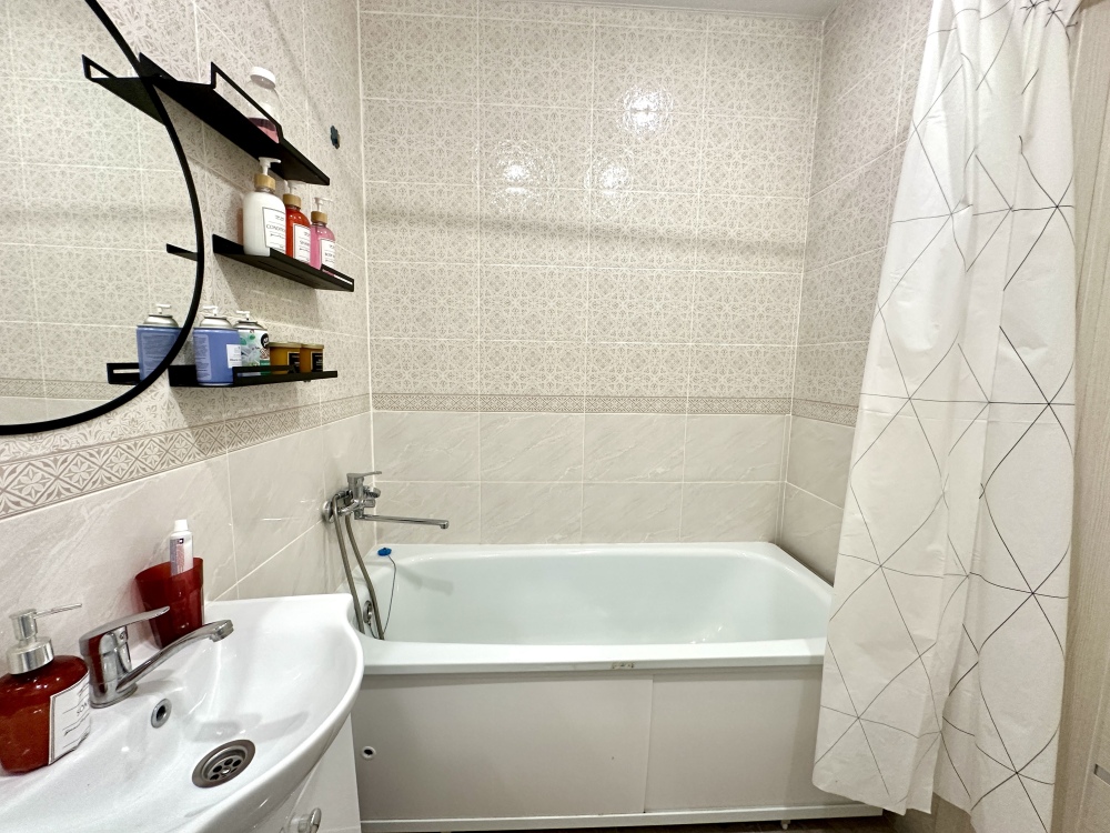 - современная бытовая техника: электрическая плита, вытяжка, двухкамерный холодильник, электрочайник, свч, фен, утюг, стиральная машина.