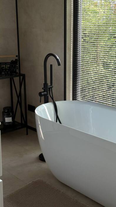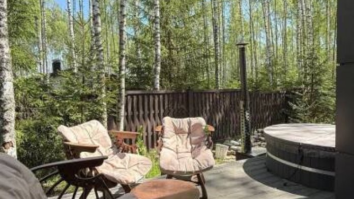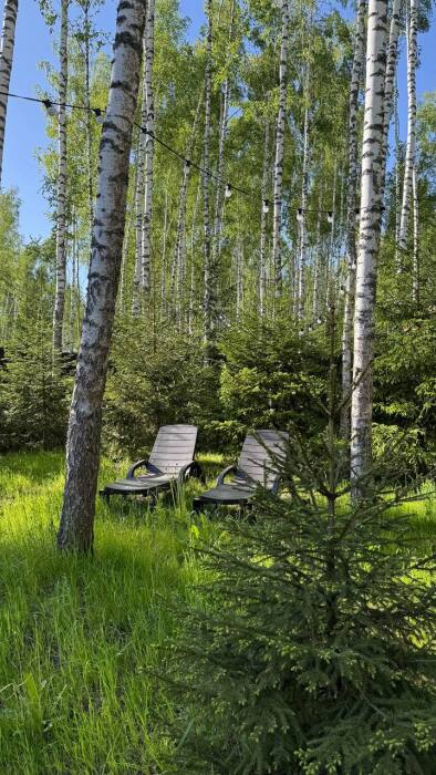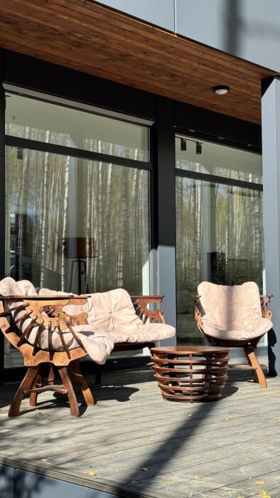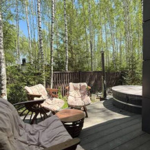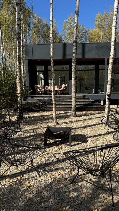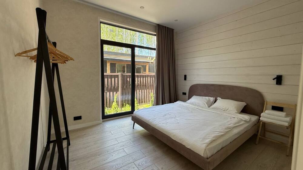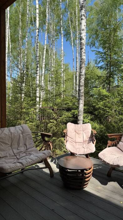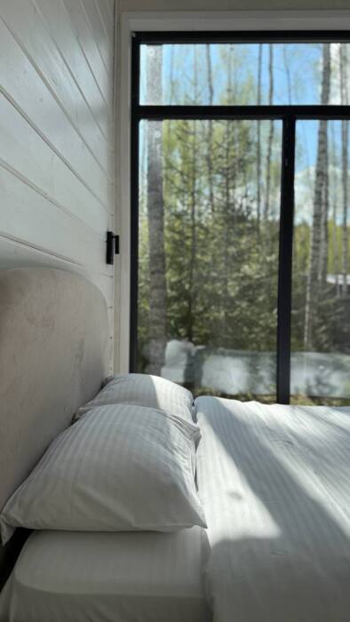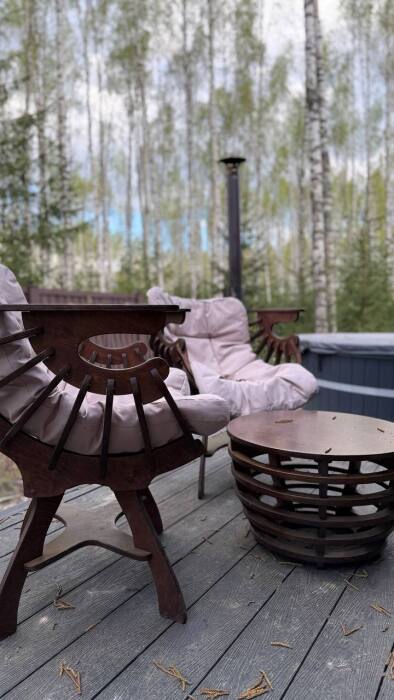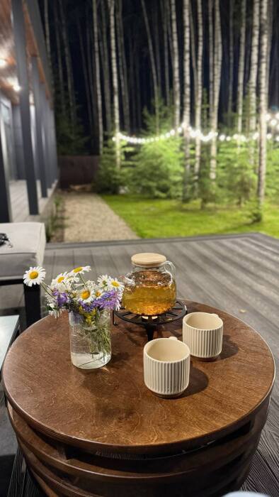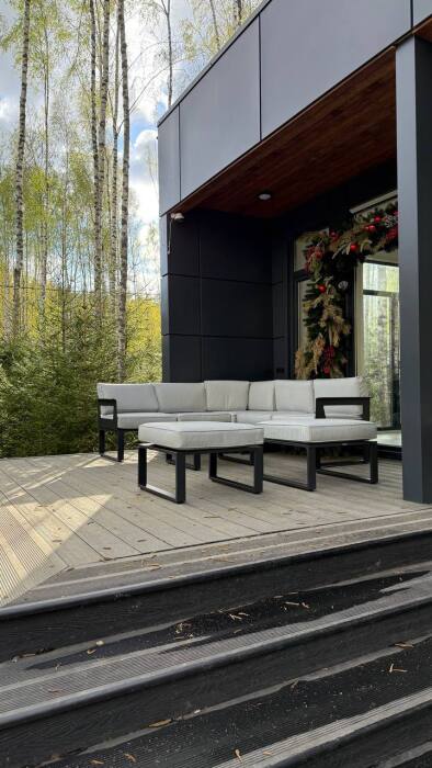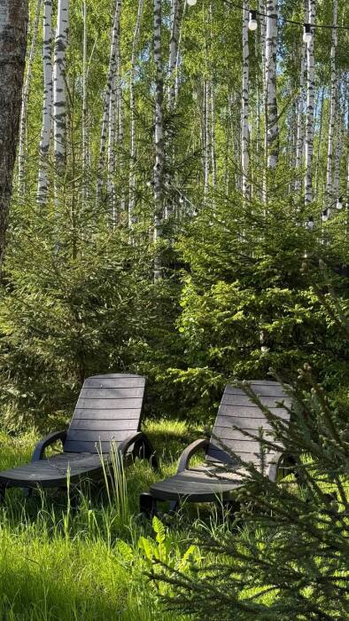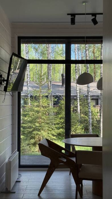 Стильный дом на лесном участке с панорамной сауной и горячим чаном