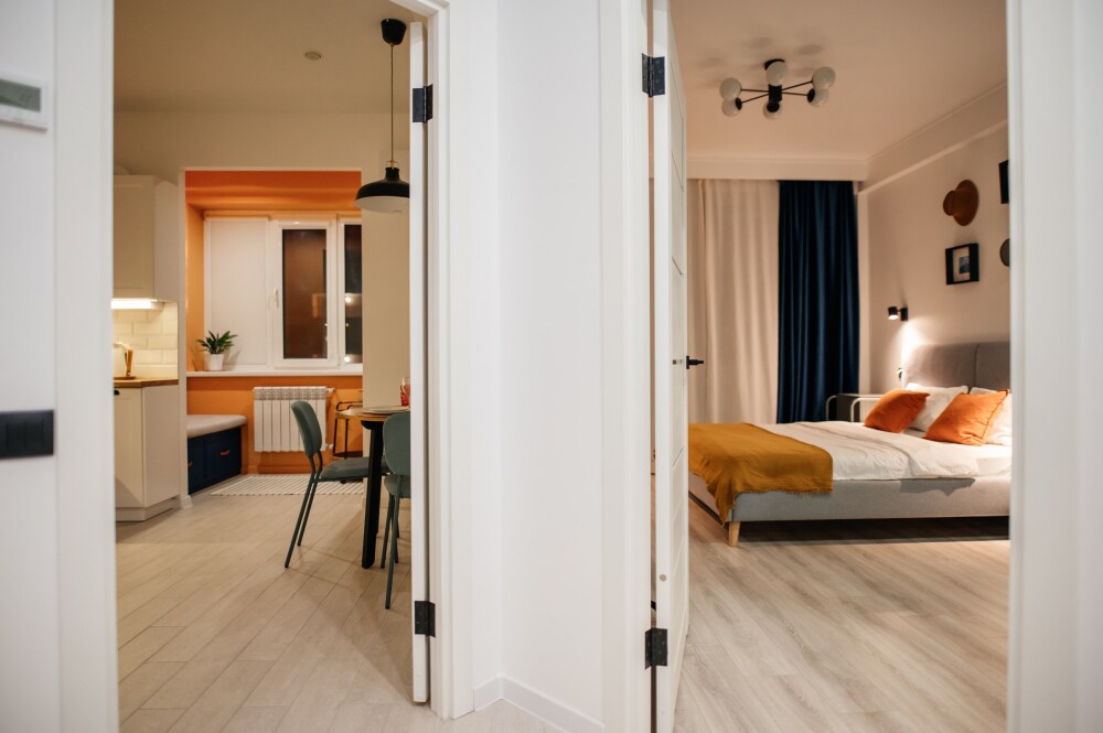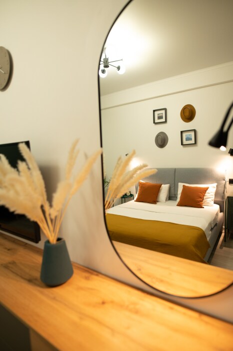 - чистая уютная однокомнатная квартира со всем необходимым для комфортного проживания (широкая двухспальная кровать 160х200 и ортопедический матрас Аскона; раскладывающийся диван 140х195; вместительная мебель для хранения вещей, подушки, одеяла и текстиль; посуда, средства гигиены, одноразовые тапочки, халаты, полотенца и т.д.);