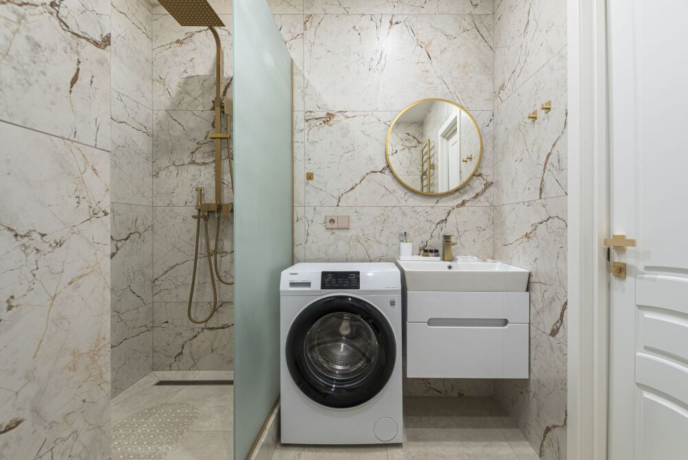 - современный санузел с душевой, стиральной машиной, феном и косметическими наборами.