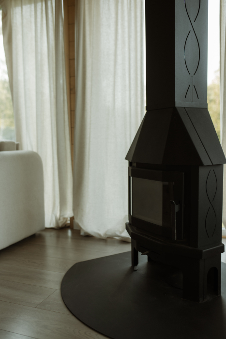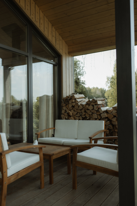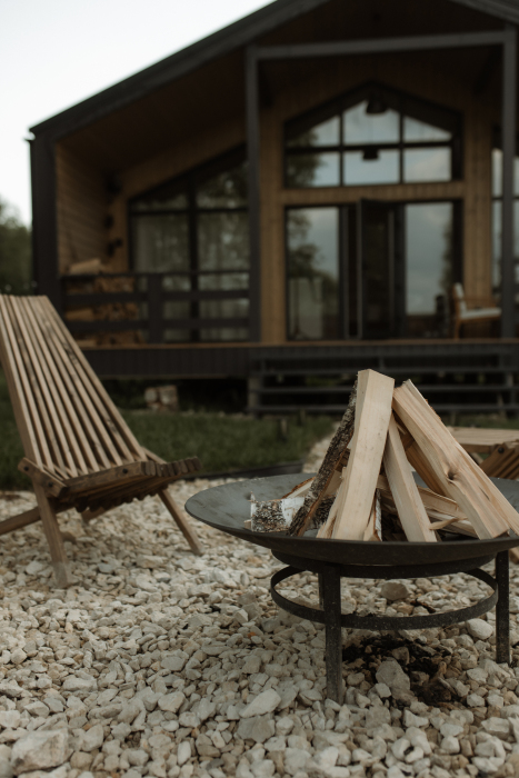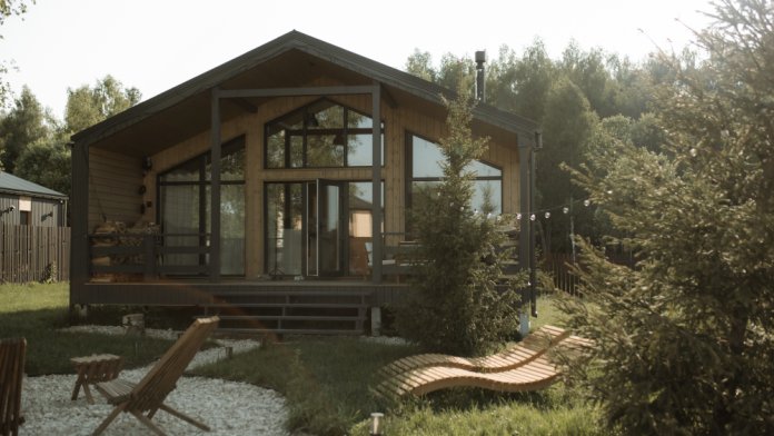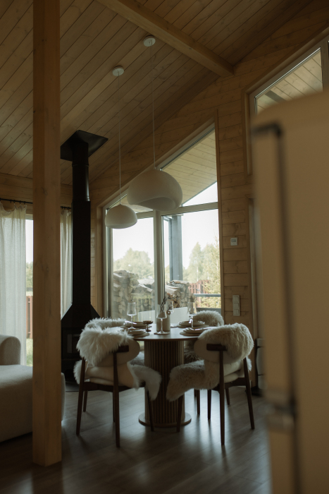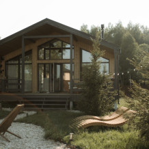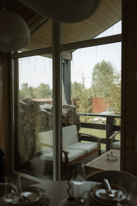 Современный дом с панорамными окнами, видом на лес, камином и сауной. Расположен в посёлке «Green Forest Premium», среди хвойного леса, где осень особенно красива: утренние туманы, румяные листья под ногами и тёплый свет в доме.