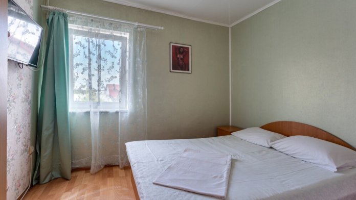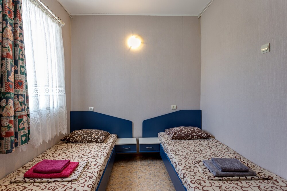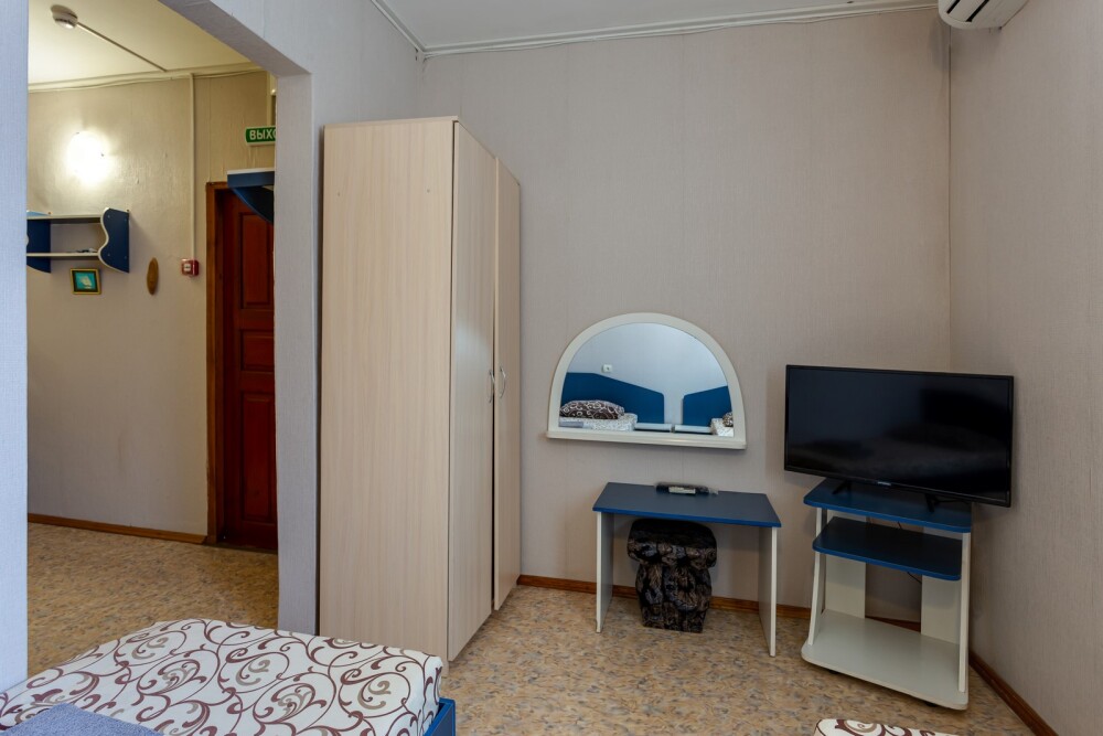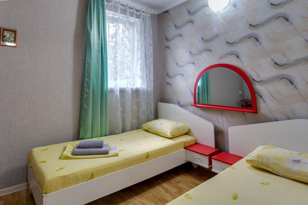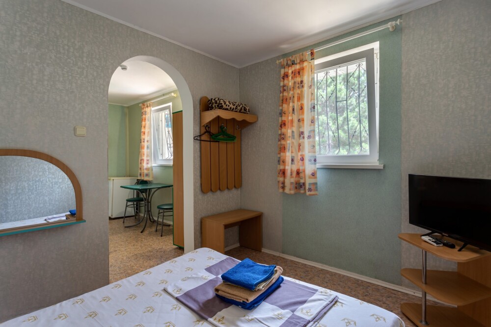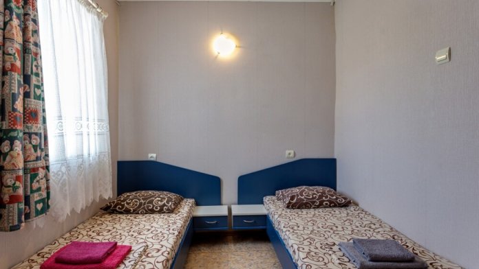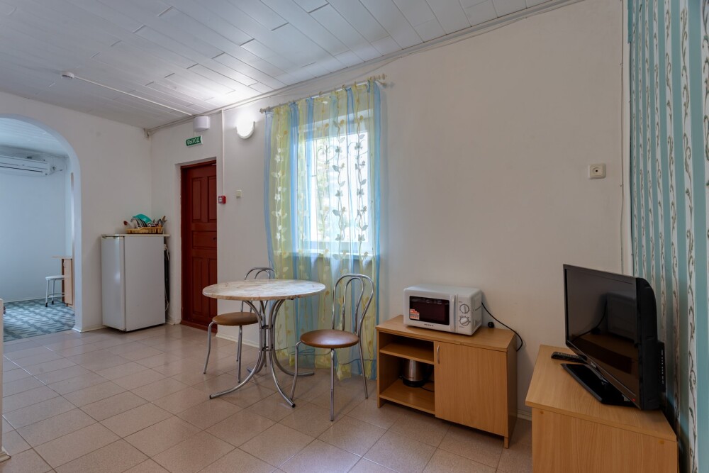 Трехкомнатный номер до четырех человек (есть 2 доп. места - 500 руб. с человека в сутки) с очень большой лоджией.