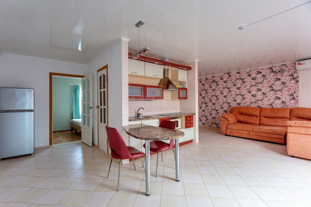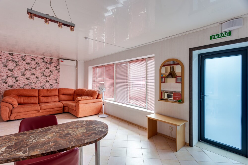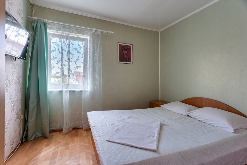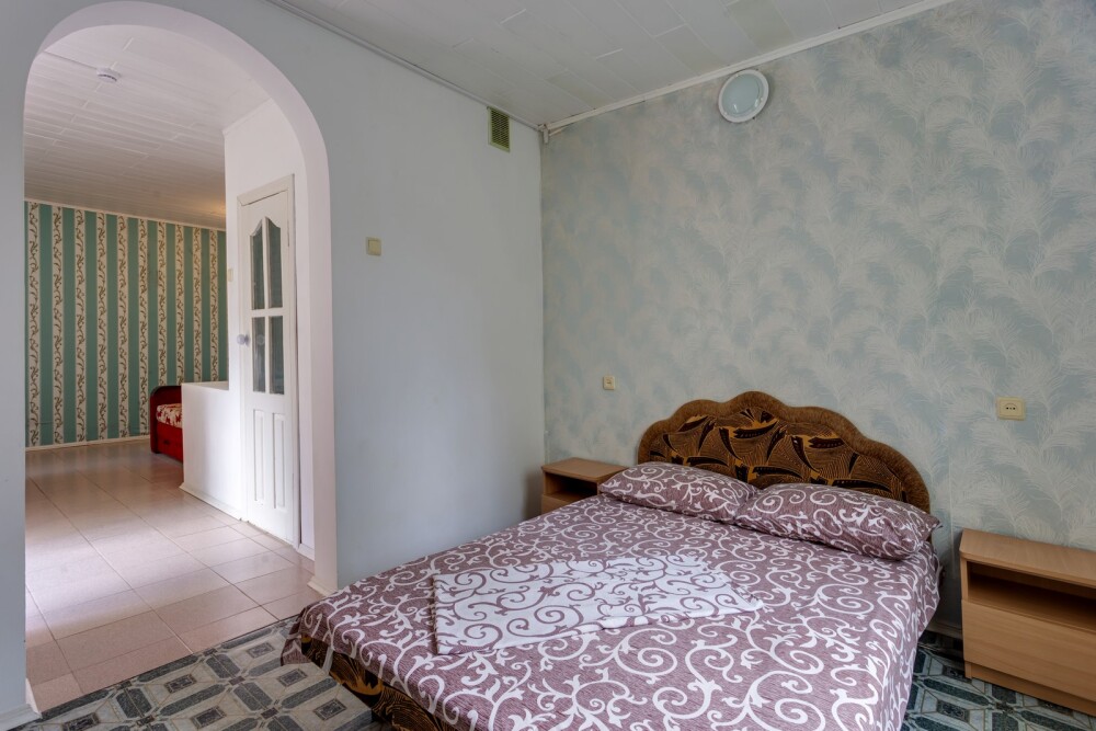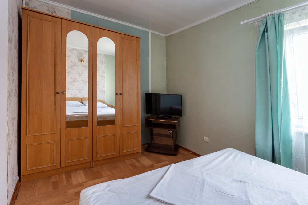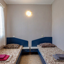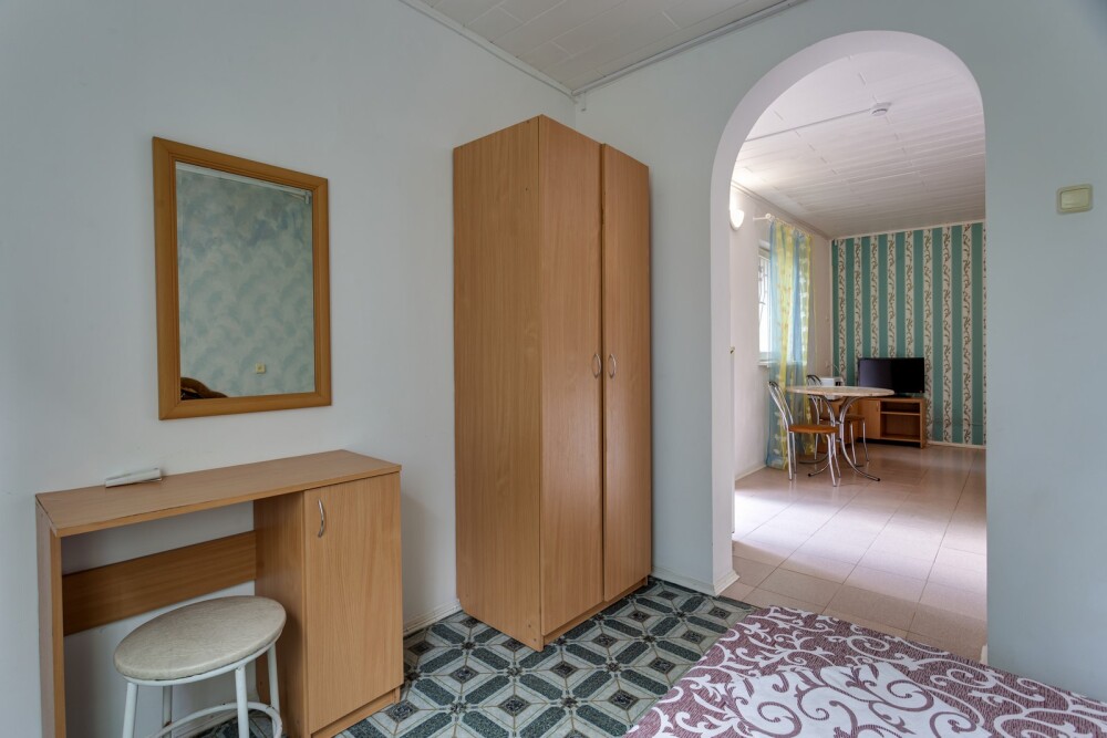 Трехкомнатный номер до четырех человек (есть 2 доп. места - 500 руб. с человека в сутки) с очень большой лоджией.