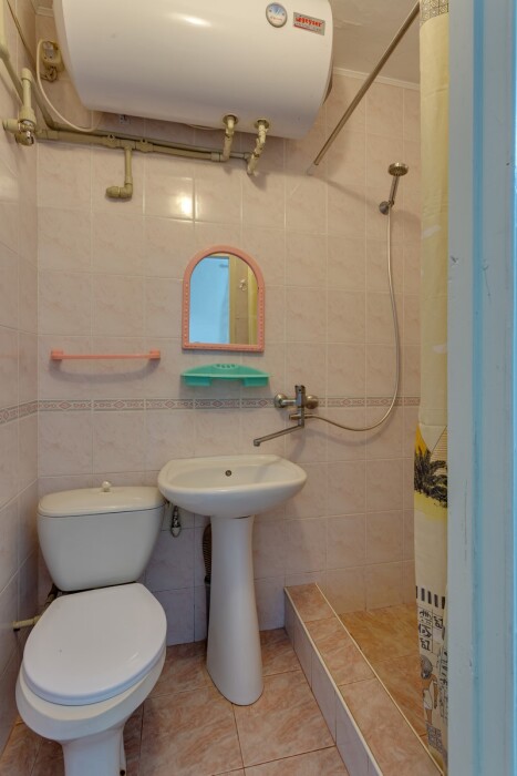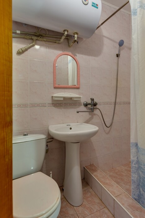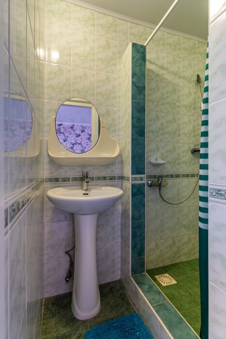 В санузле: душ, туалет, умывальник, гигиенические принадлежности, полотенца, холодная и горячая вода – постоянно.