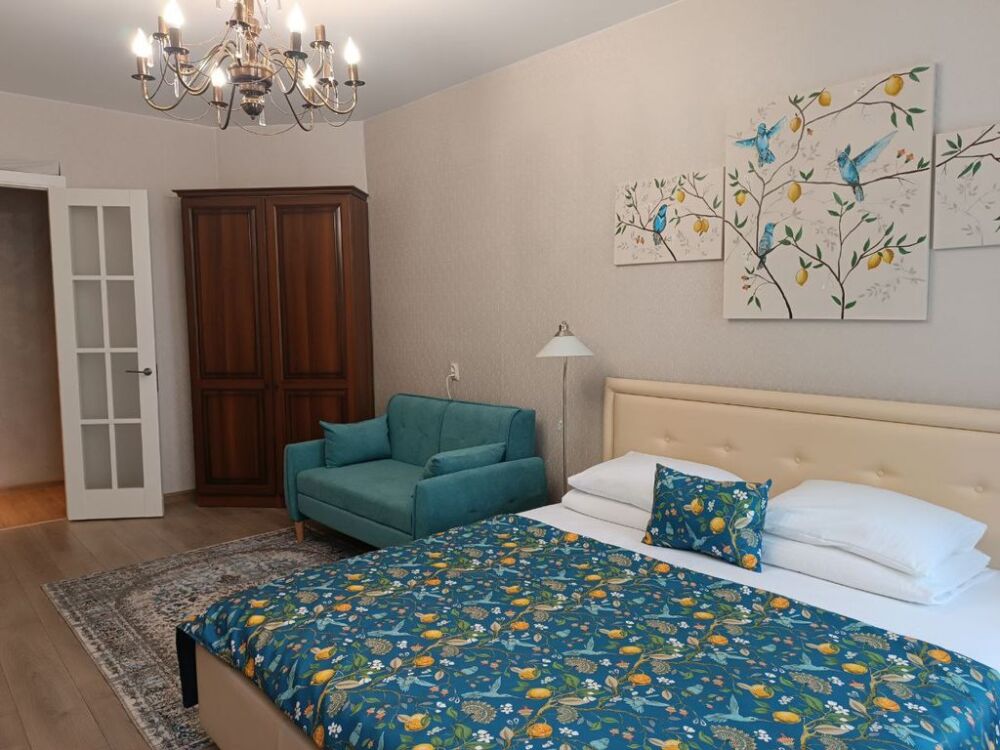 Одна комната 15 кв. метров с двуспальной кроватью и вместительным шкафом.