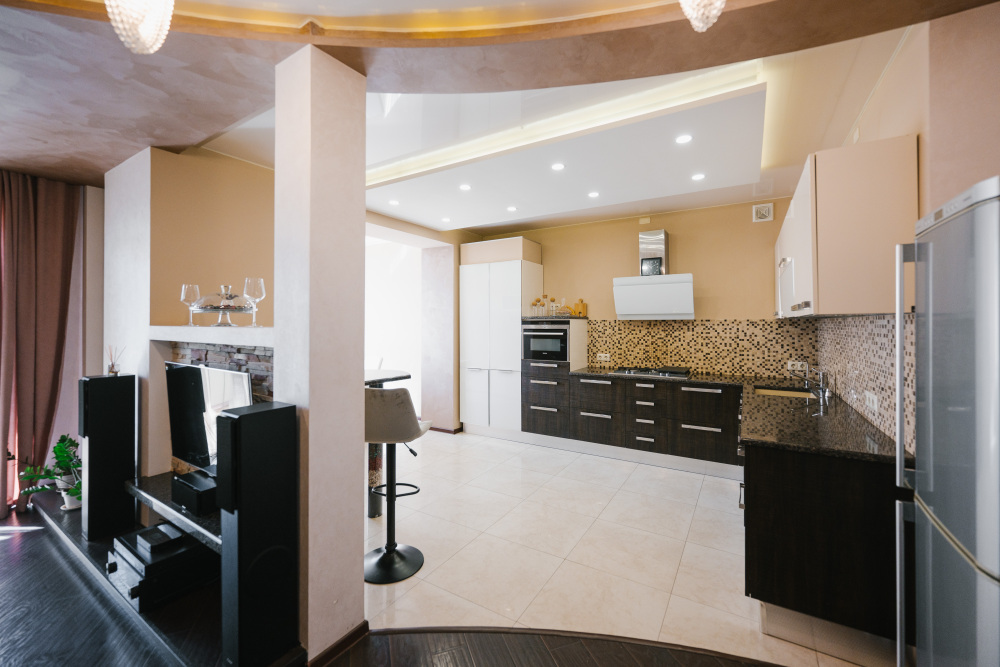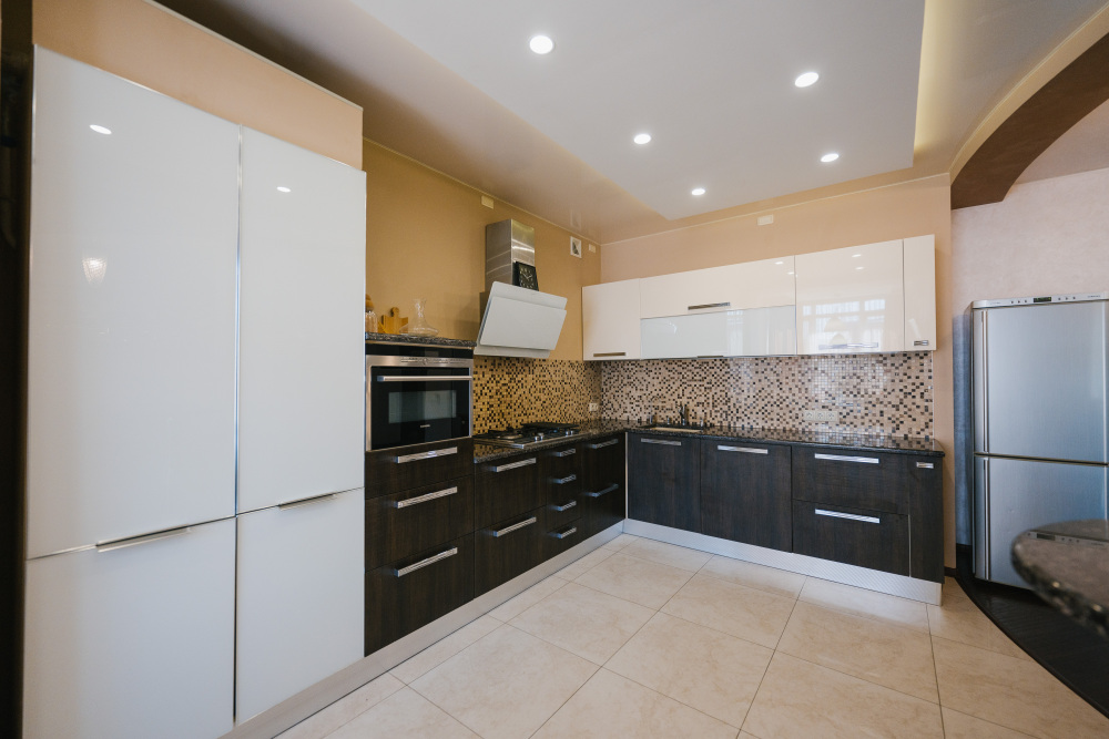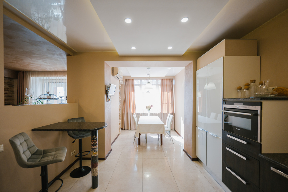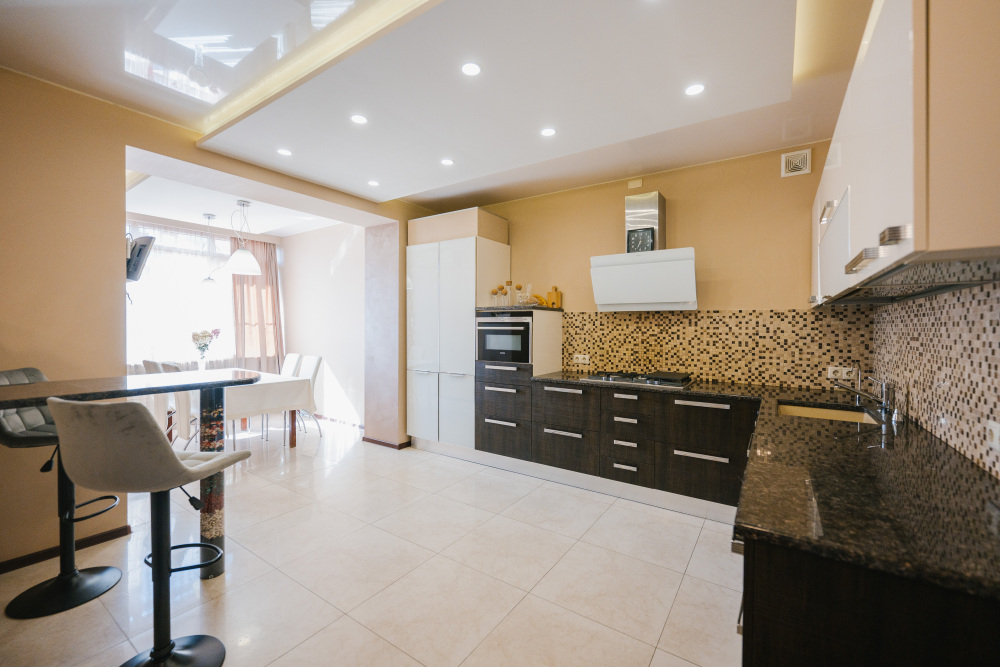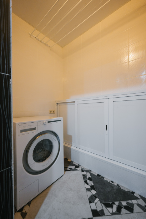 - полноценная кухня со всей необходимой посудой и техникой от ведущих брендов Bosch и Siemens, включая посудомойку, делают пространство современным и функциональным;