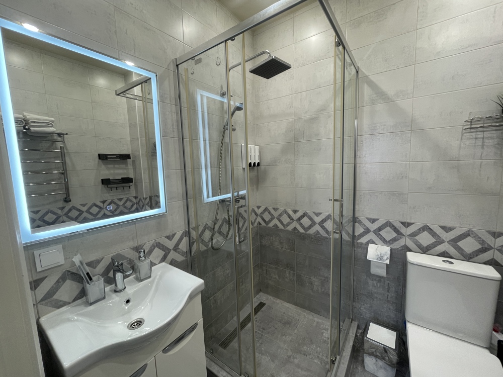 - индивидуальное отопление, тёплый пол, тропический душ, кондиционер, бытовая техника (в т.ч. утюг, фен, робот-пылесос), Wi-Fi, 200 каналов ТВ + кинопрокат.