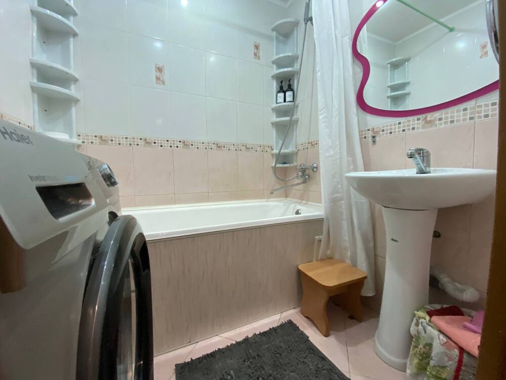 - Ванная комната с гелем для душа, шампунем, зубной пастой.