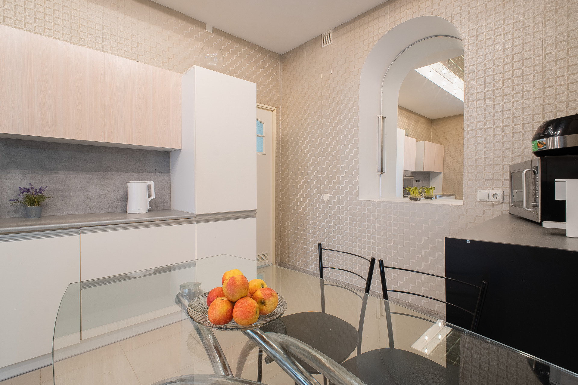 В квартире есть все необходимое: интернет, постельное белье полотенца, телевизор, плита с духовкой, микроволновая печь, кофеварка посуда, просторная ванная со стиральной машиной. Фен, гладильная доска и утюг.