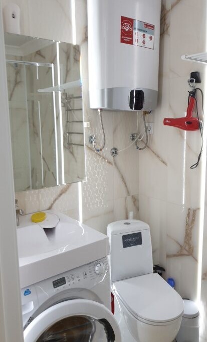 В квартире есть всё необходимое для комфортного проживания: большая кровать, раскладной диван, обеденный стол, телевизор, кондиционер, кухня со всей посудой, микроволновка, электрическая плита, электрочайник, холодильник, wi-fi, в ванной комнате душевая кабина, стиральная машина.