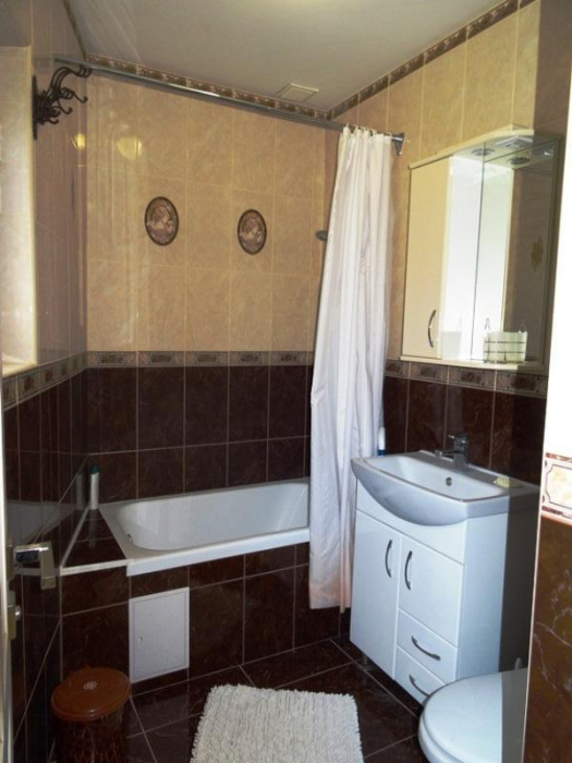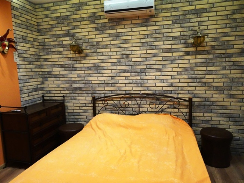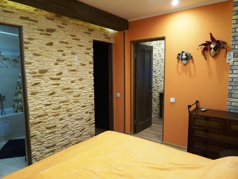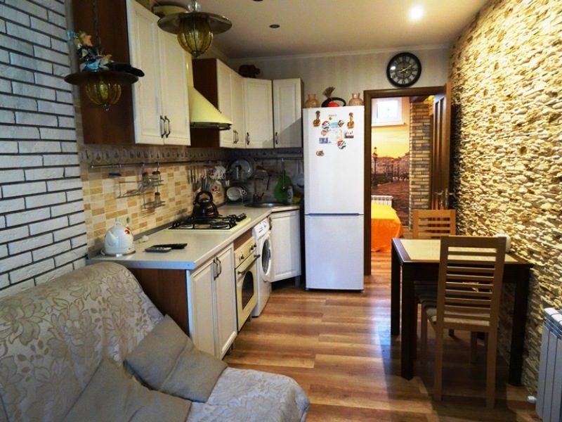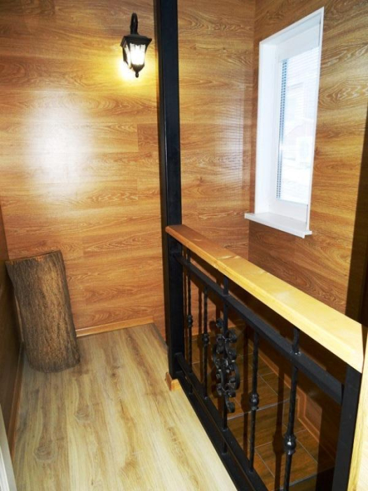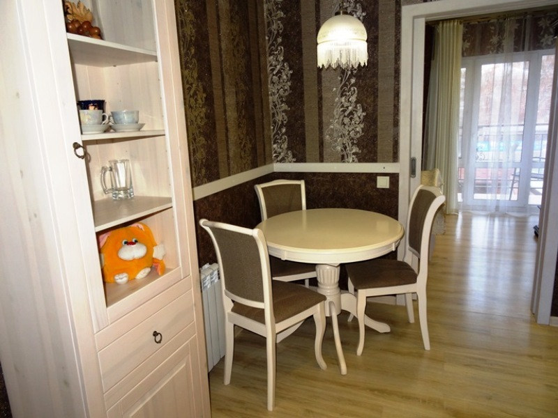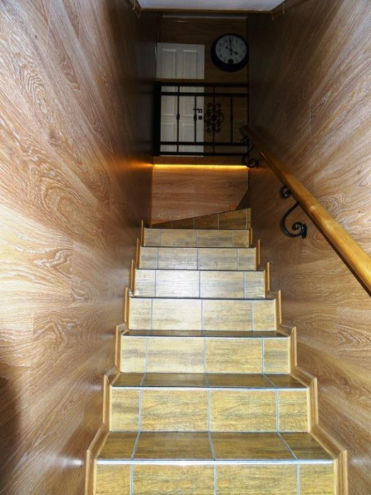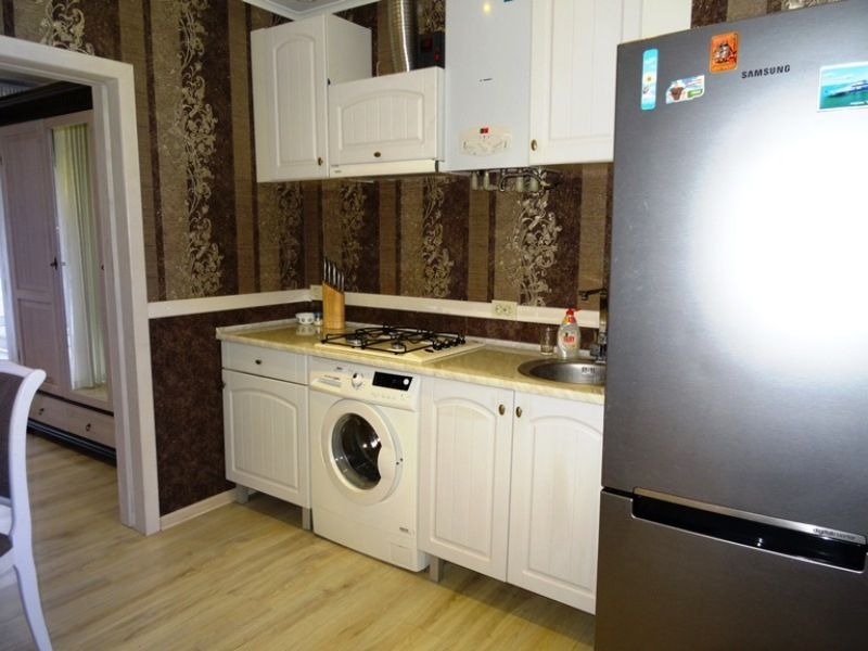 С хорошим ремонтом, обставлен качественной изящной мебелью. Отдых в такой приятной, домашней обстановке способен подарить только положительные и приятные воспоминания. На каждом этаже 2 смежные комнаты, совмещённые санузлы, кухня, холодильник и стиральная машина.