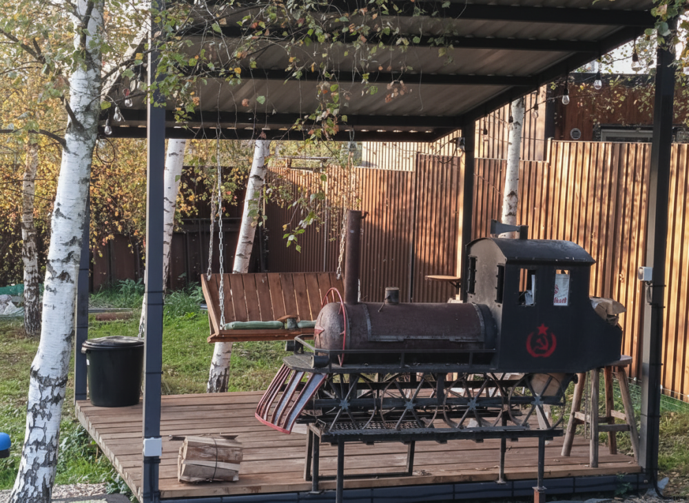 Приглашаем Вас провести время в уютном и атмосферном месте, окруженном природой и с множеством удобств. Патио хаус «Губернские дачи» предоставляет возможность насладиться отдыхом в уютной обстановке, дом с просторной верандой Patio и крытым мангалом в виде старинного паровоза. Да, да! Мангал-паровоз!
