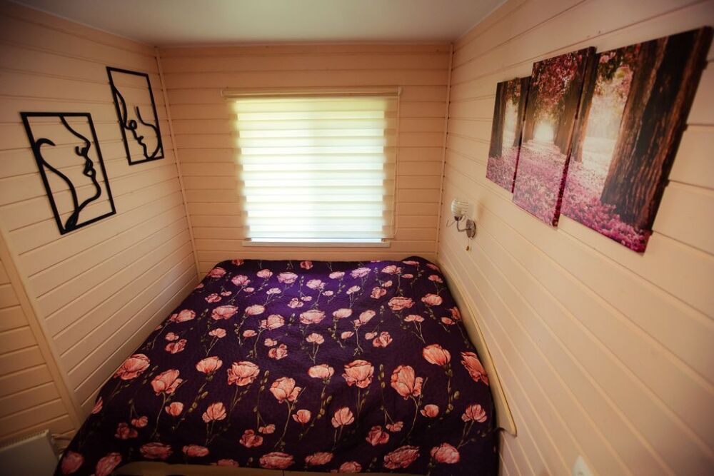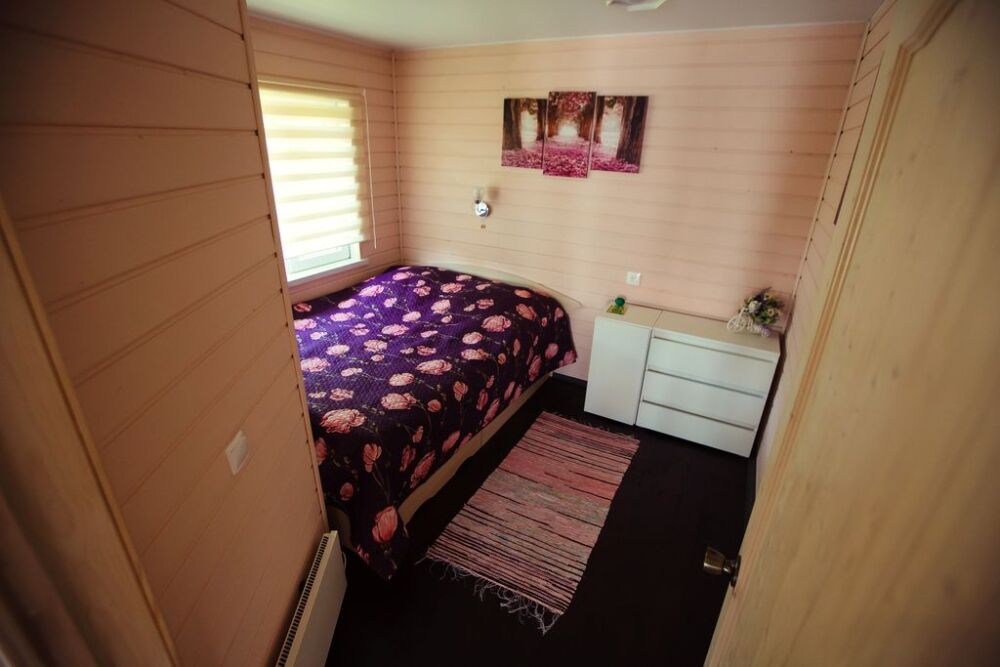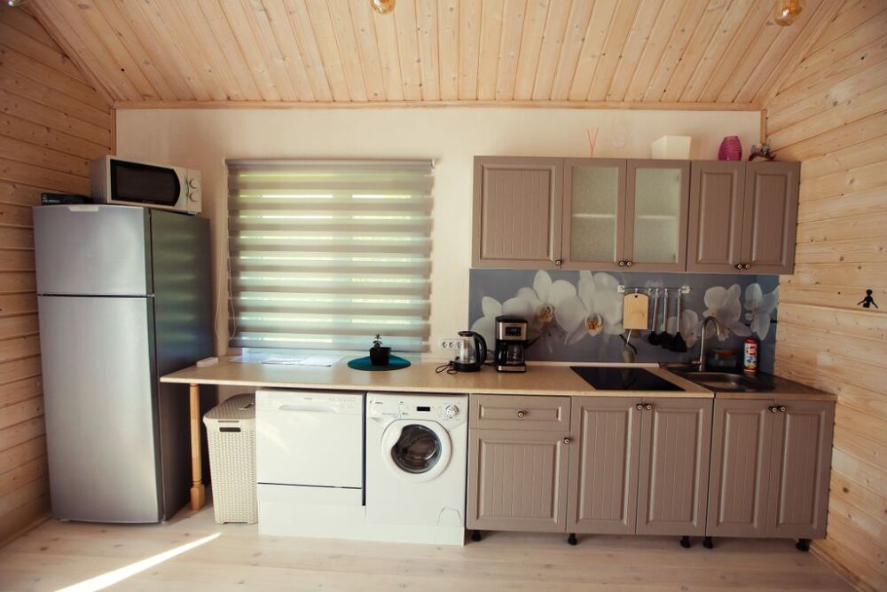В доме две спальни, кровать 140*200, и две кровати 80*200, большая кухня с гостиной (диван раскладной160*200), совмещённый санузел, сауна (безлимитная), терраса, мангальная зона под крышей, на улице (шампура, решетка).