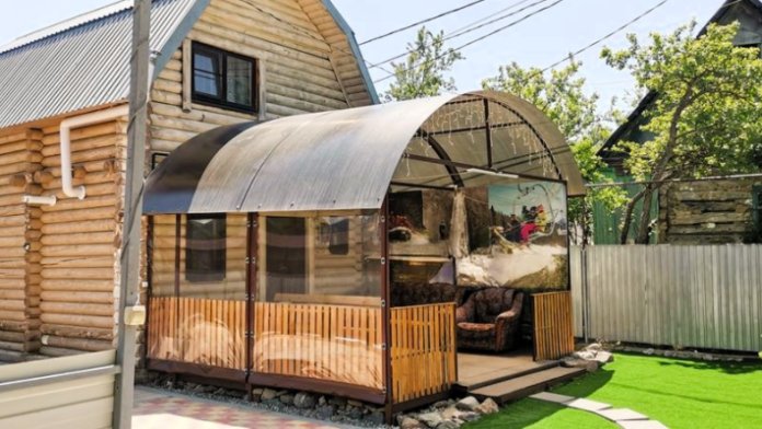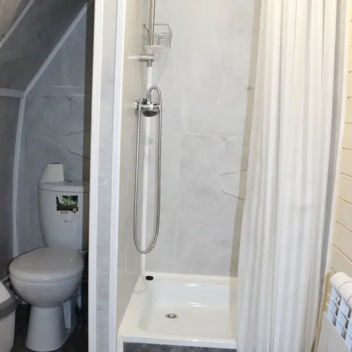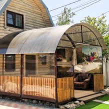 Отдельный дом на 8 человек, на территории больше никого нет.