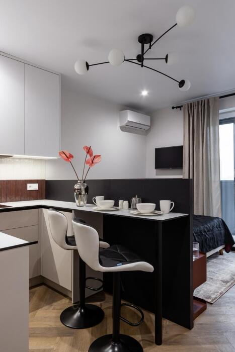 В апартаментах, если Вы путешествуете на машине, припарковаться можно будет на парковке рядом.