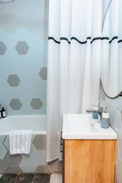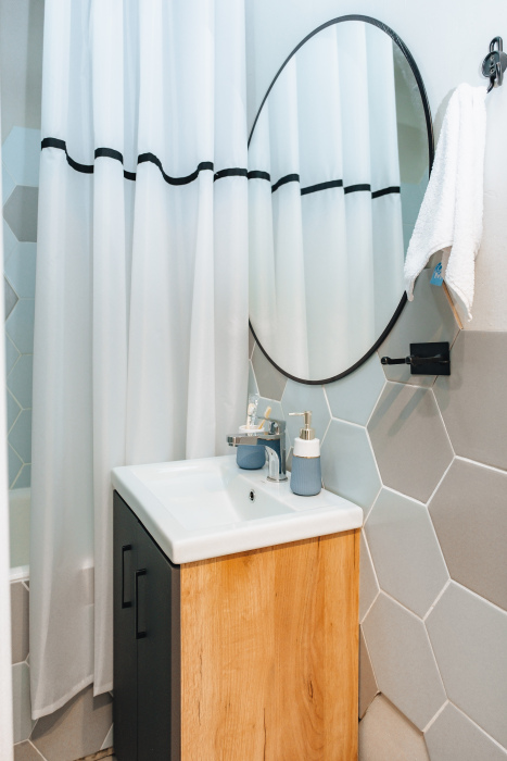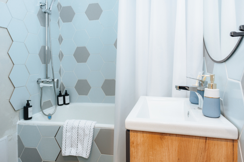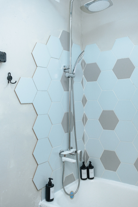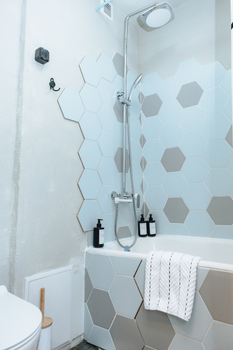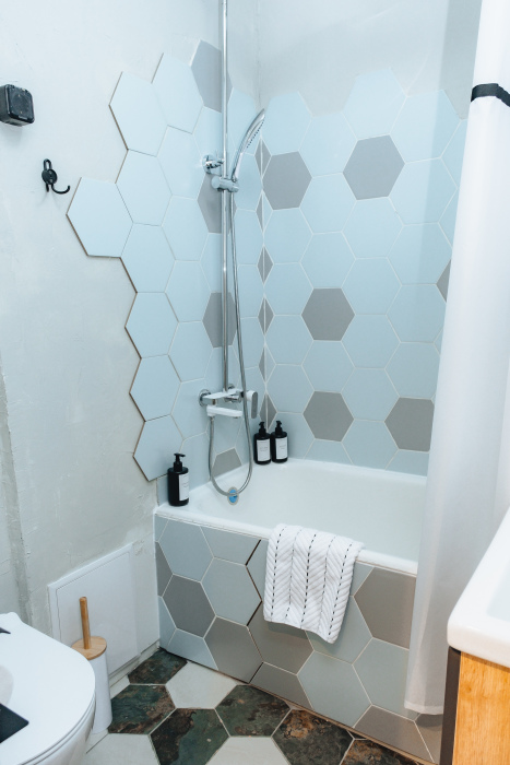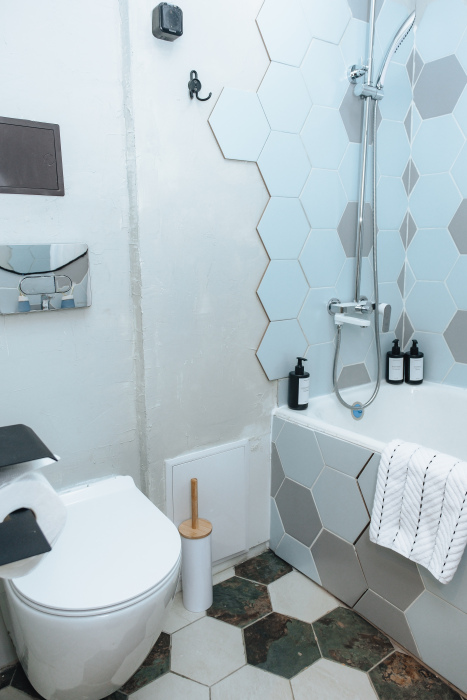 - Ванная комната с ванной и всеми средствами гигиены, сланцы.