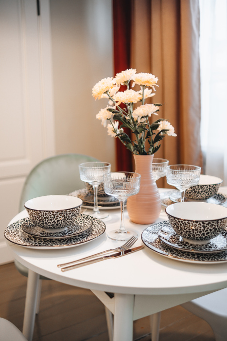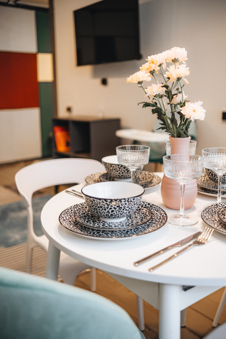Можно! В квартире есть все, что может понадобиться для приготовления еды. Также есть вся посуда для комфортного проживания: ножи, столовые приборы на 6 человек, кастрюли, сковородки, тарелки, бокалы и многое другое включено, если снять квартиру у нас.