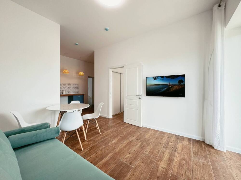 Кухня-гостиная: раскладной диван (140*200), обеденный стол для 4 человек, сплит система, телевизор, мойка, холодильник, индукционная панель, СВЧ печь, электрочайник, весь необходимый набор посуды и инвентарь для самостоятельной уборки.