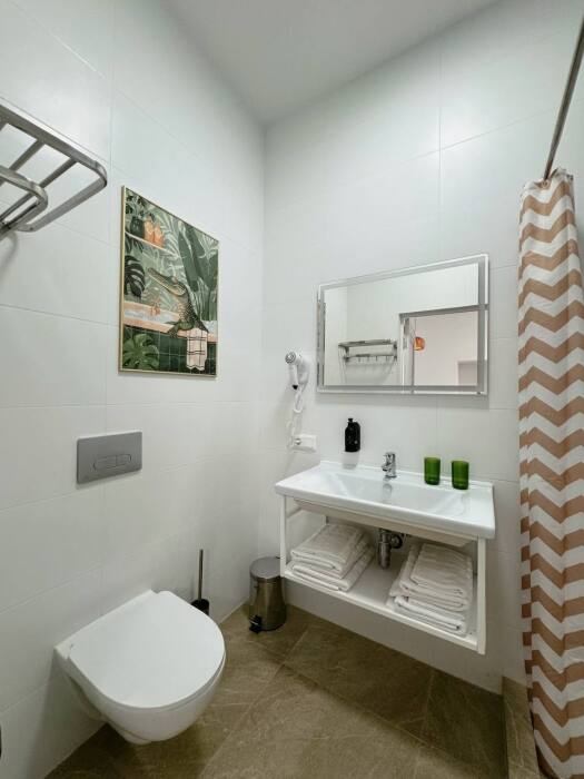 Есть оптоволоконный интернет (WI FI), смарт ТВ, сплит система, парковка в закрытом дворе. По запросу: стиральная машина, утюг, гладильная доска.