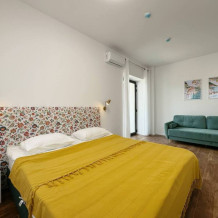 Спальные места: кровать с ортопедическим матрасом (180*200), раскладной диван (140*200), высококачественные постельные принадлежности и белье.