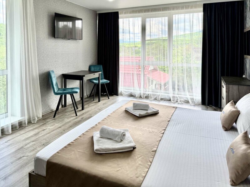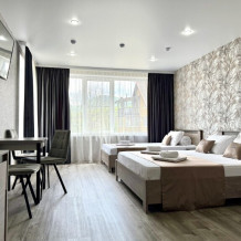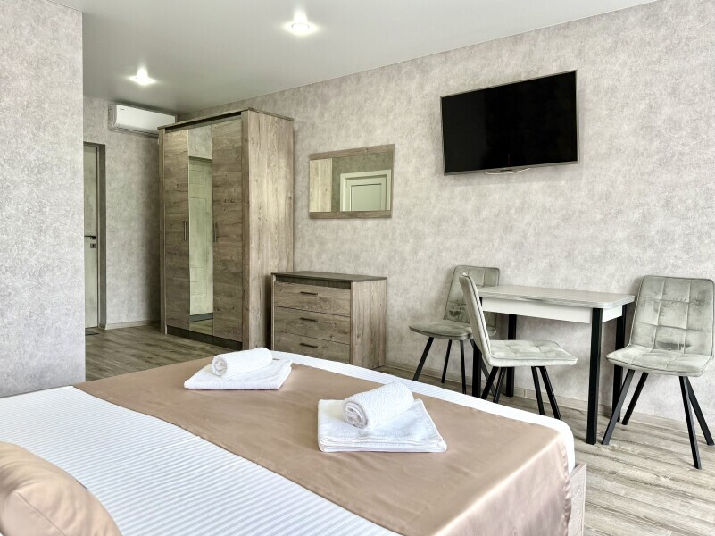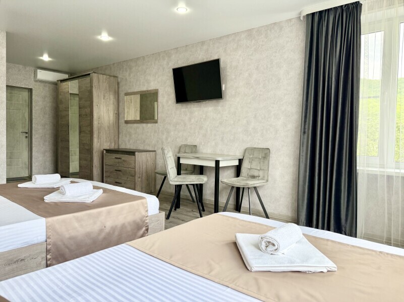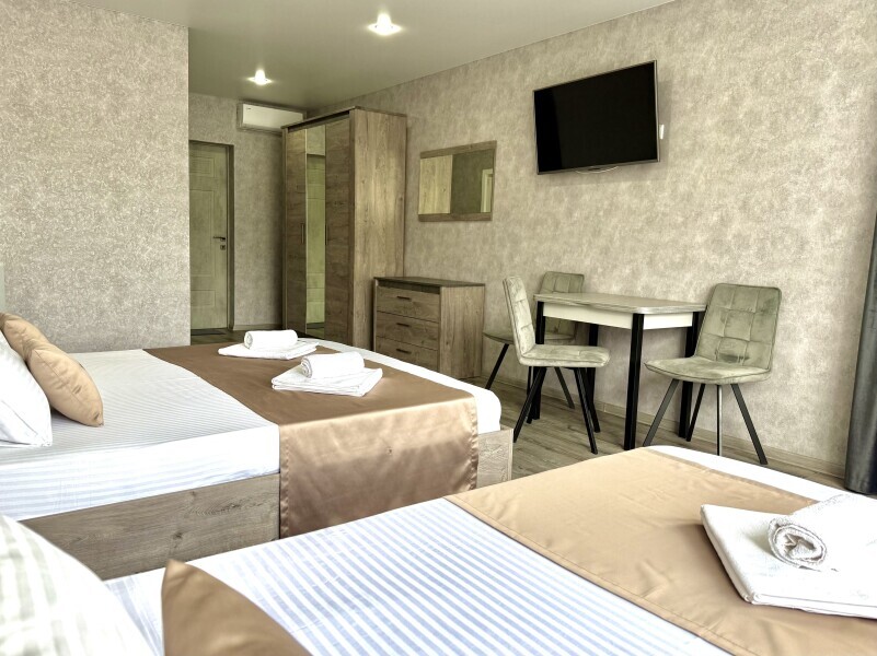 В гостевом доме только просторные комнаты категории «Комфорт», оформленные с вниманием к деталям. Каждая комната оснащена кондиционером, современной мебелью, качественным текстилем и всем необходимым для полноценного отдыха.