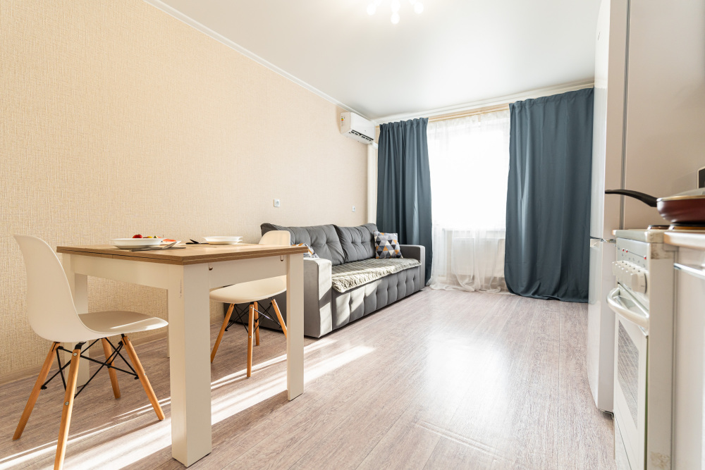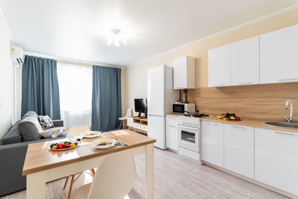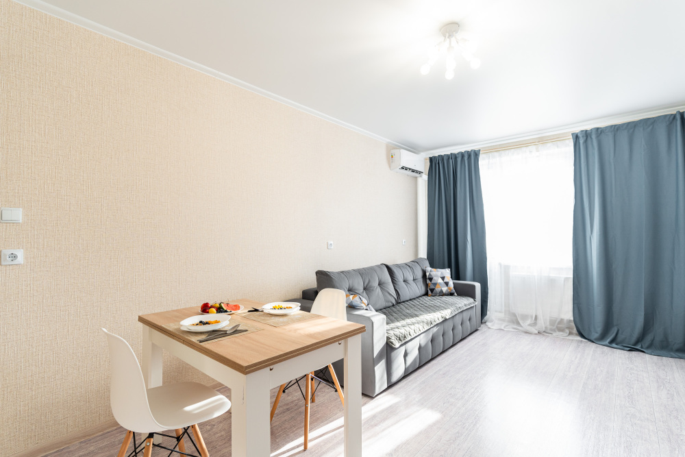Уютная квартира в ЖК «Алексино» с красивым видом на море и горы в экологически чистом районе. Детская площадка во дворе, парковка свободная во дворе.