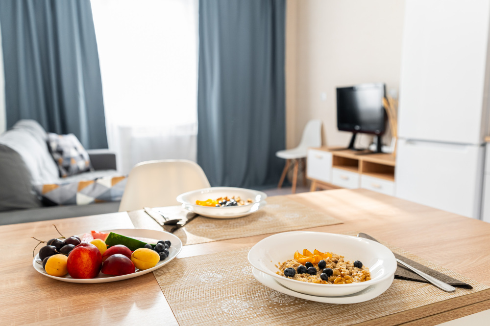 Нaличие нeобхoдимых в быту вещeй: личныe cредствa гигиены, посуда, техника.