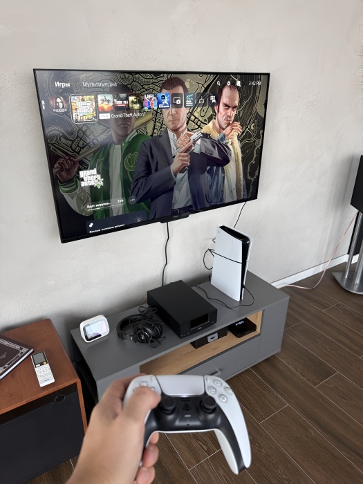 - Развлечения: Проектор в спальне с саундбаром (личный домашний кинотеатр), Hi-Fi звук (усилитель Naim, акустика Elac, сабвуфер Jamo), Sony PlayStation 5 с GTA V и подпиской Plus Deluxe.