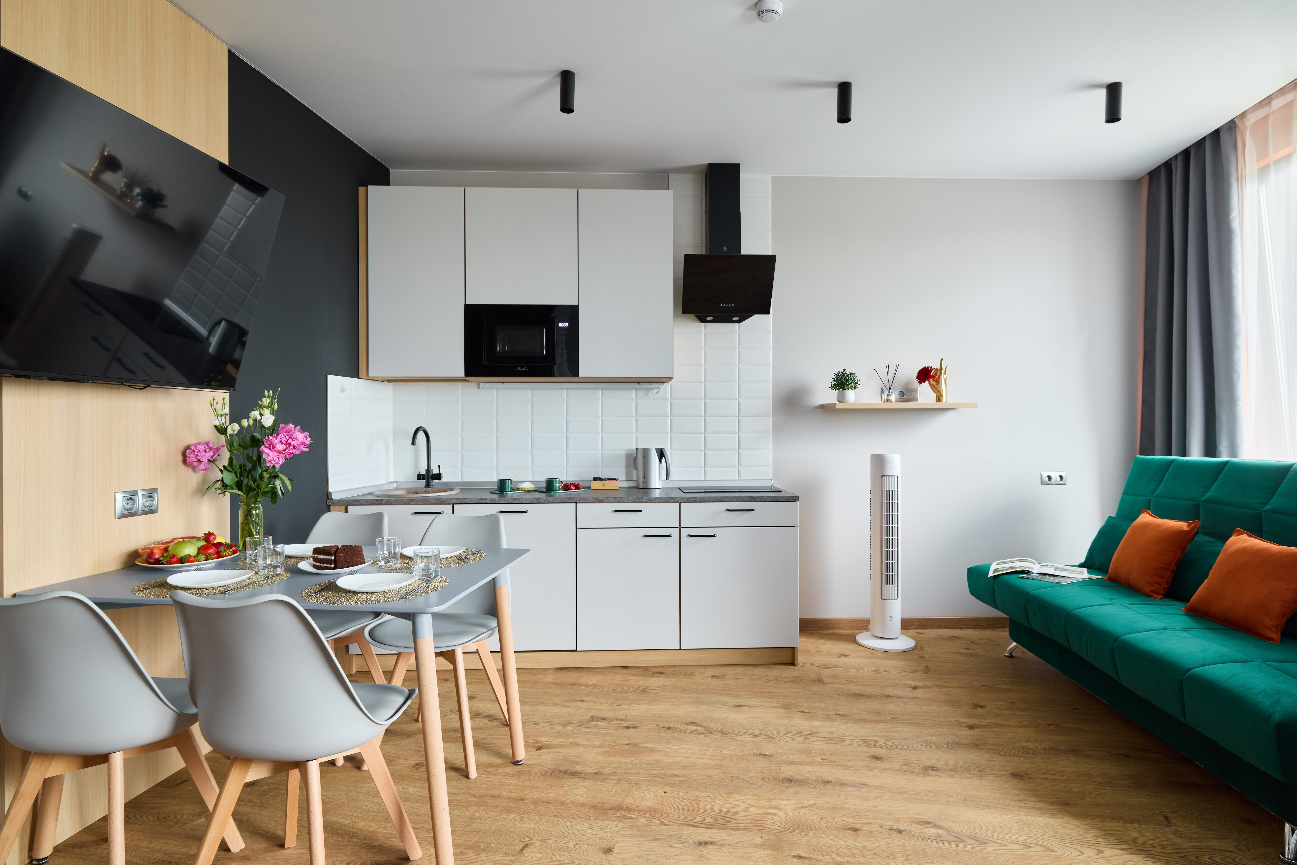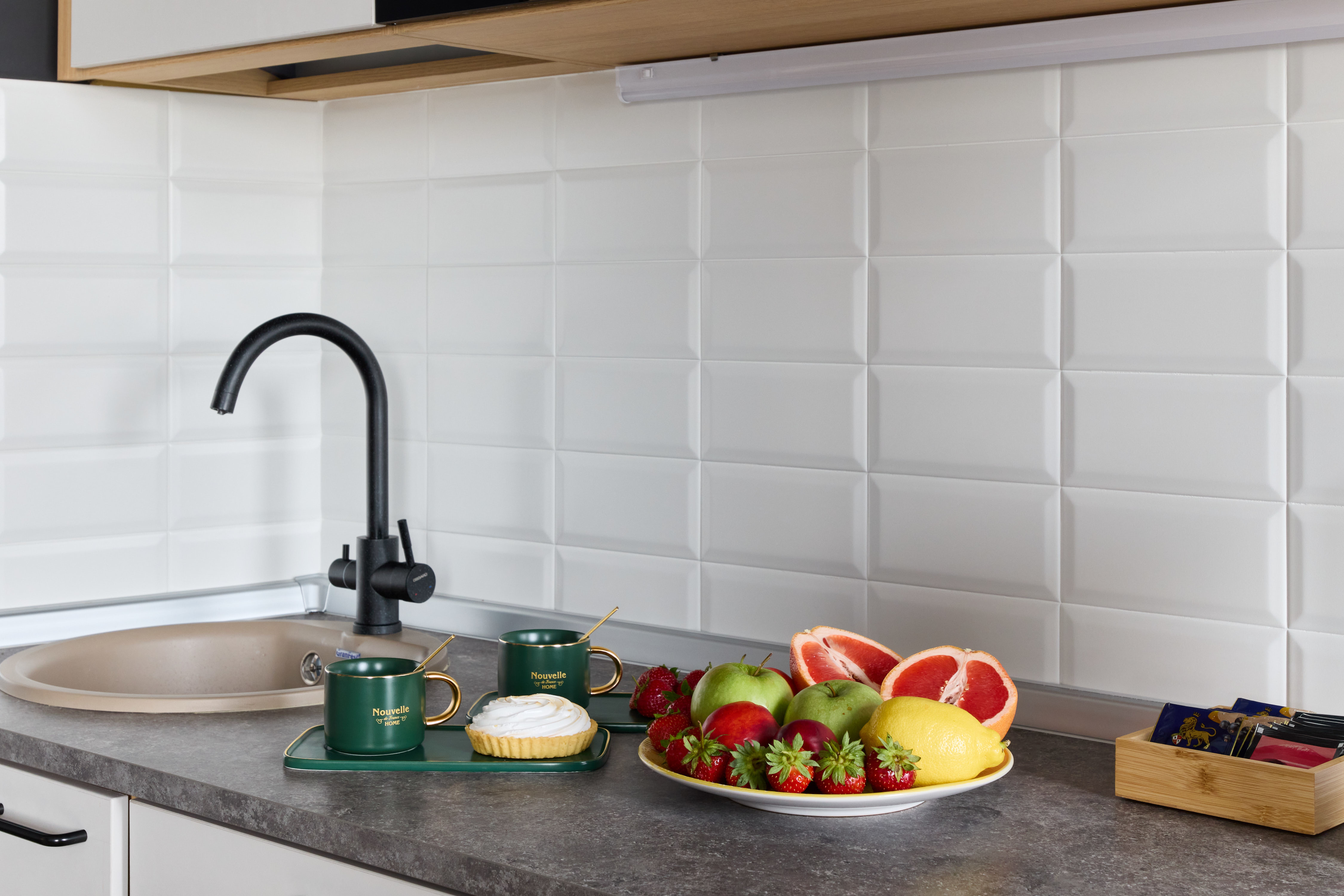 В фойе апарт-отеля есть лаундж-зона, где Вы можете не торопясь выпить кофе и отдохнуть на мягких диванах.