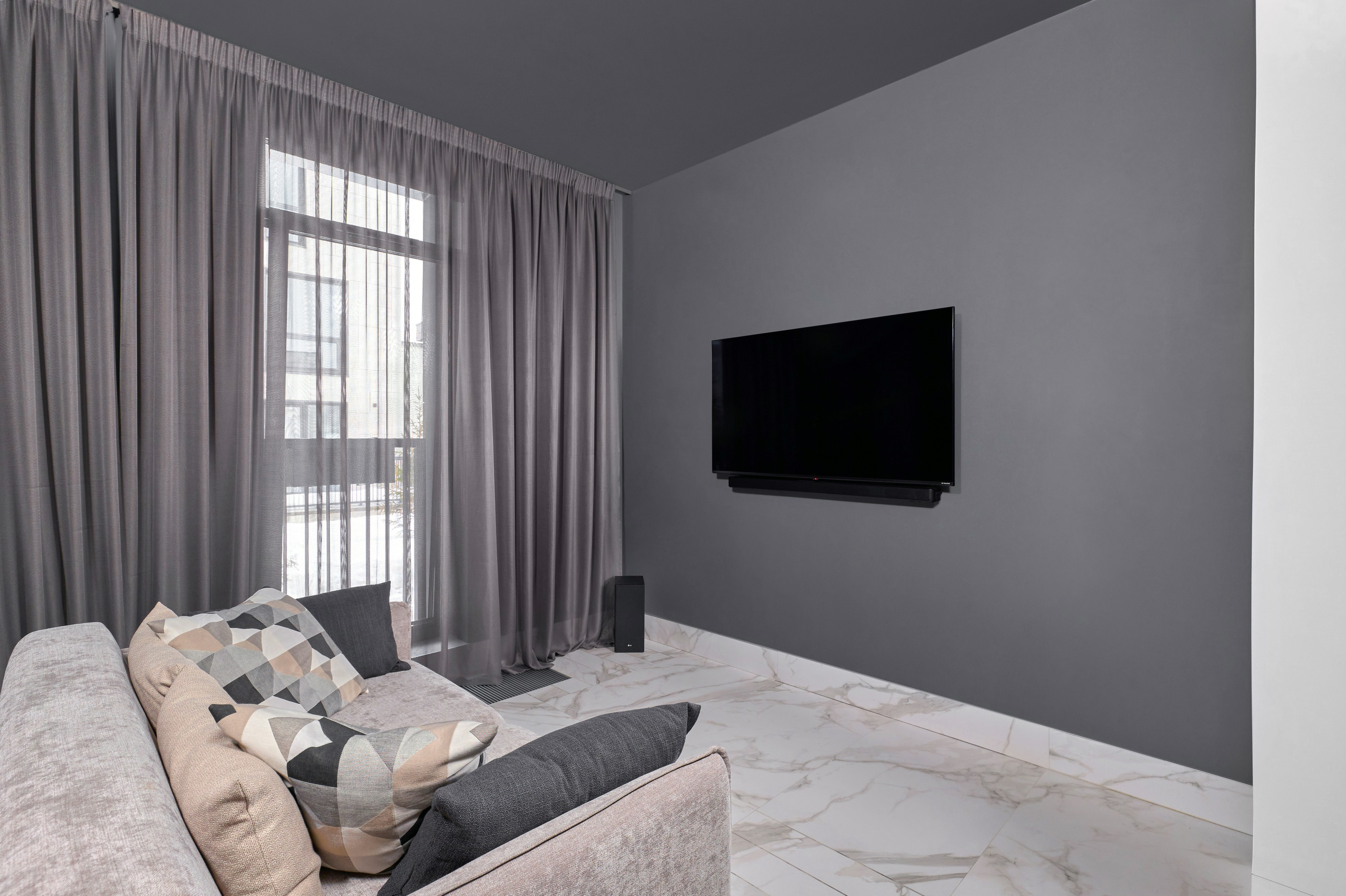 - Большой телевизор с объемным звуком и специальным освещением создают романтическую атмосферу.