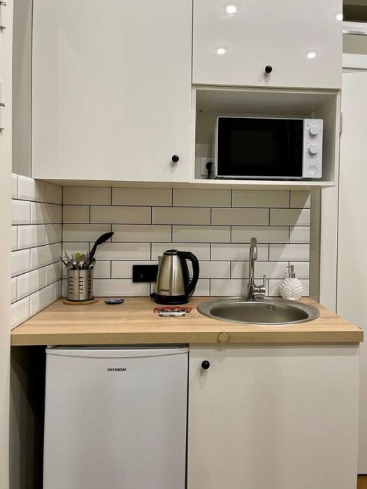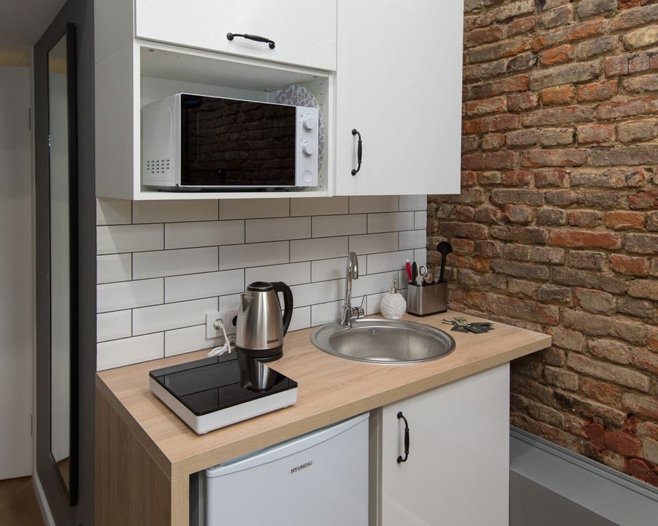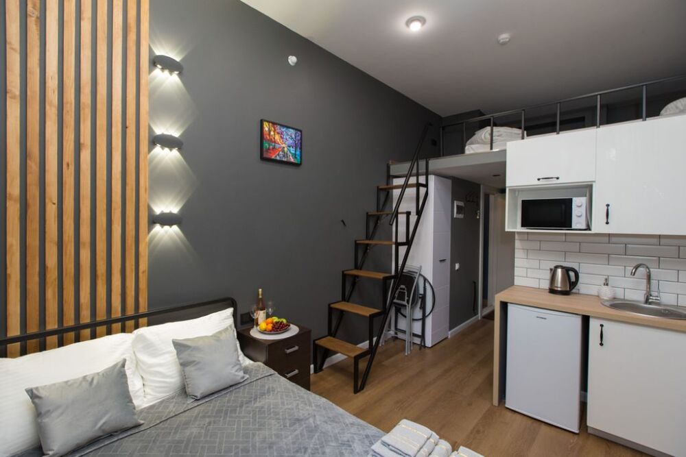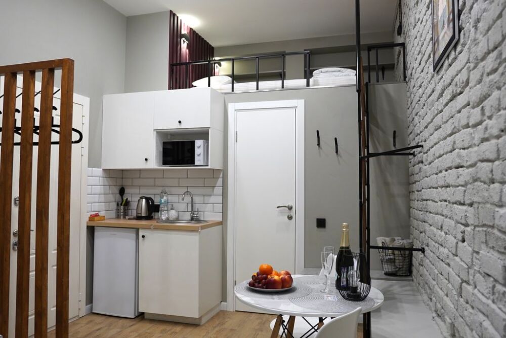 Все апартаменты оснащены мини-кухней, душевыми и туалетными комнатами. Гостей порадует уютная обстановка и всё необходимое для комфортного проживания: бесплатный Wi-Fi, холодильник, фен, туалетные принадлежности, полотенца, постельное белье, набор посуды в каждом номере. Мини-кухня в апартаментах не предназначена для полноценной, серьезной готовки. Однако гости всегда могут сделать кофе, сварить кашу, яйца на завтрак, что-то разогреть. Каждый апартамент оборудован собственным водонагревателем. В апартаментах есть стиральная машина, утюг и гладильная доска, гости могут ими пользоваться бесплатно.