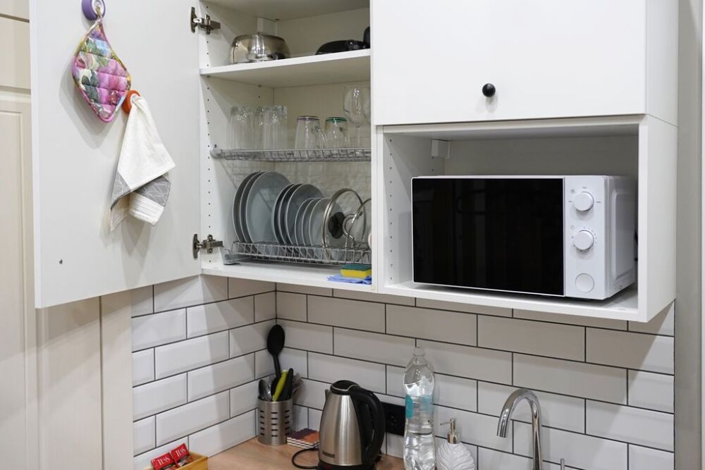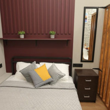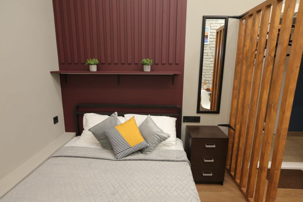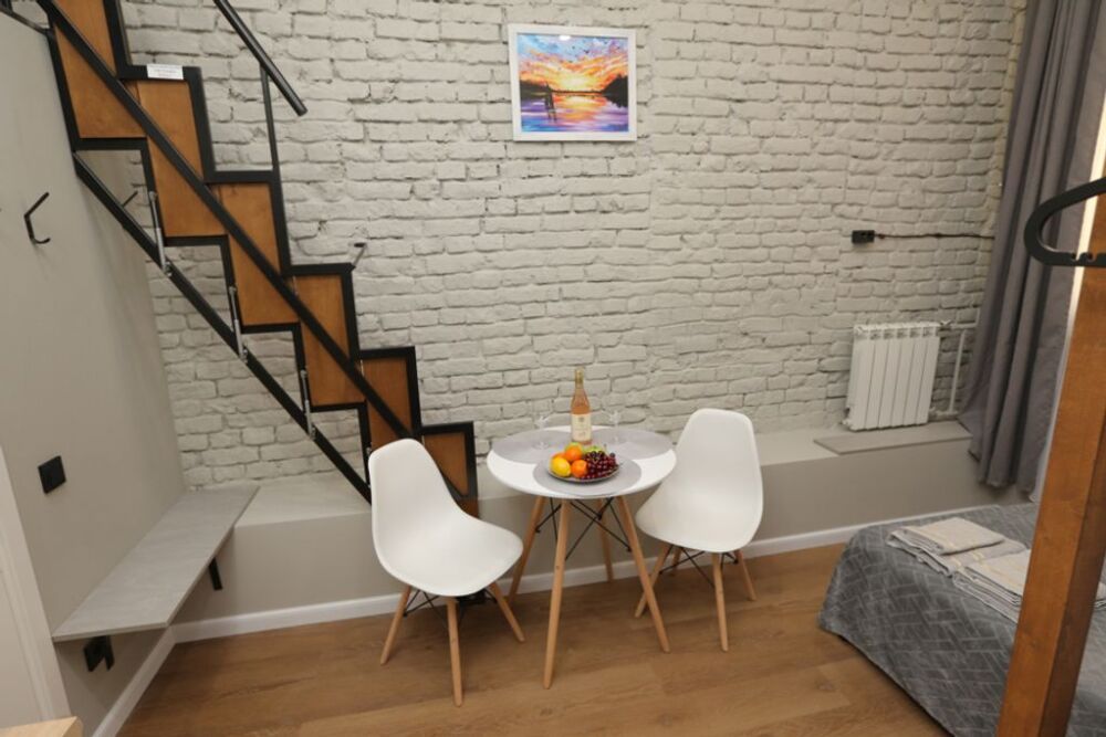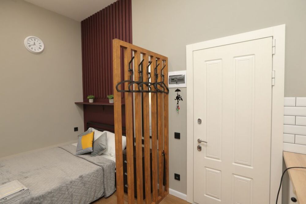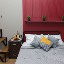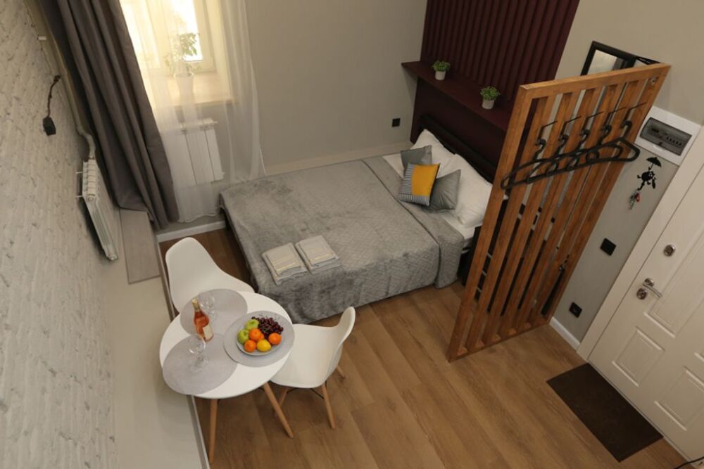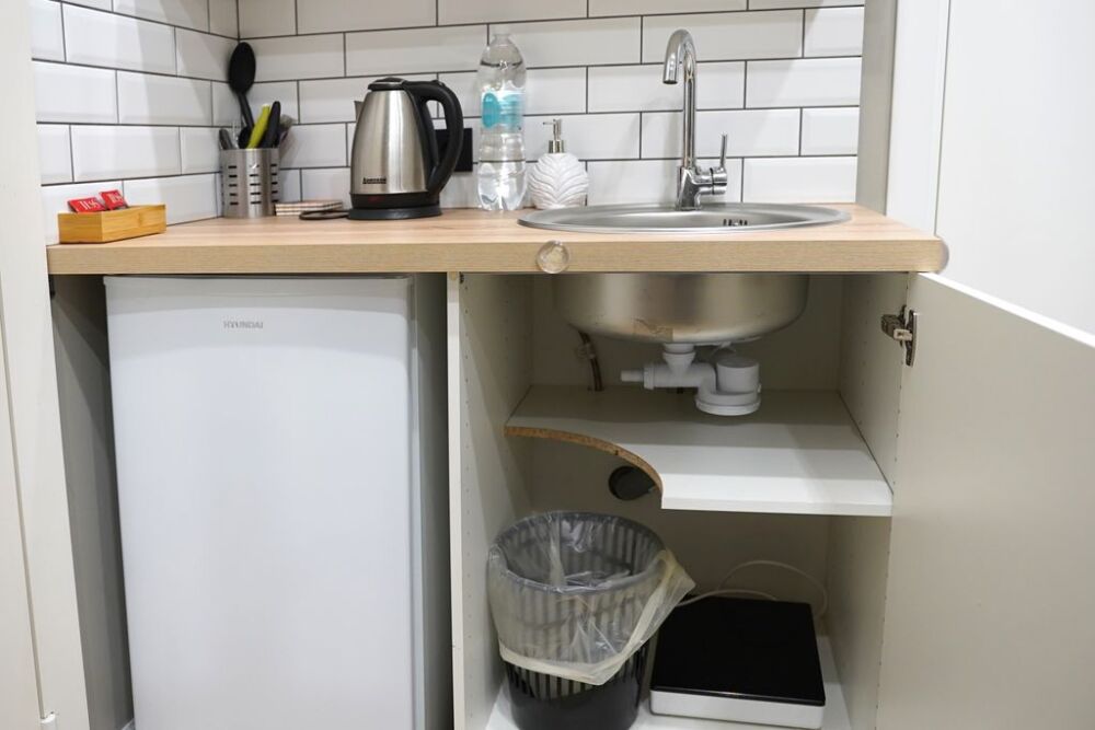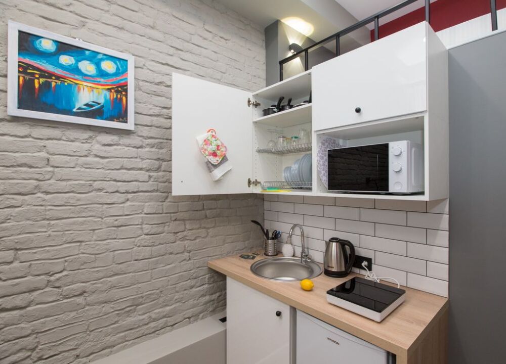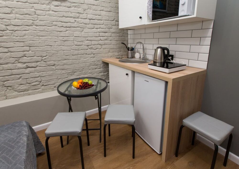 Номер оснащен всем необходимым для комфортного проживания - мини-кухней с необходимой посудой, туалетной комнатой. В апартаменте есть холодильник, микроволновая печь, электрическая плитка. В каждом номере есть телевизор, фен, туалетные принадлежности, полотенца, постельное белье.