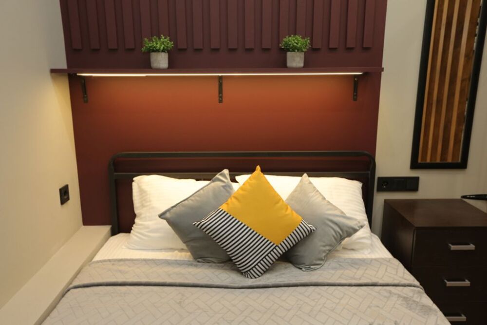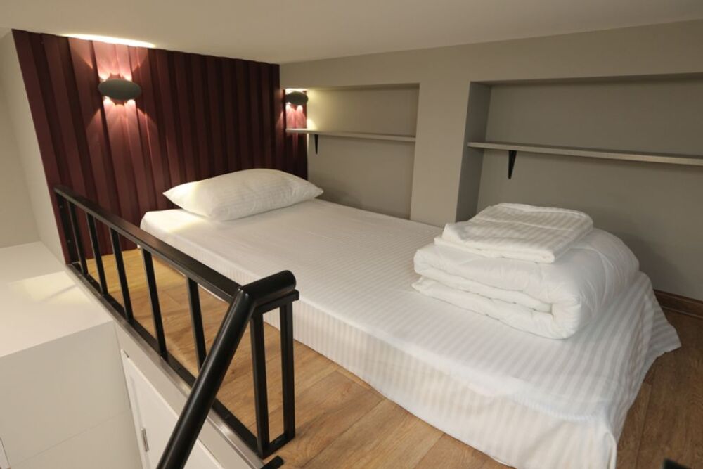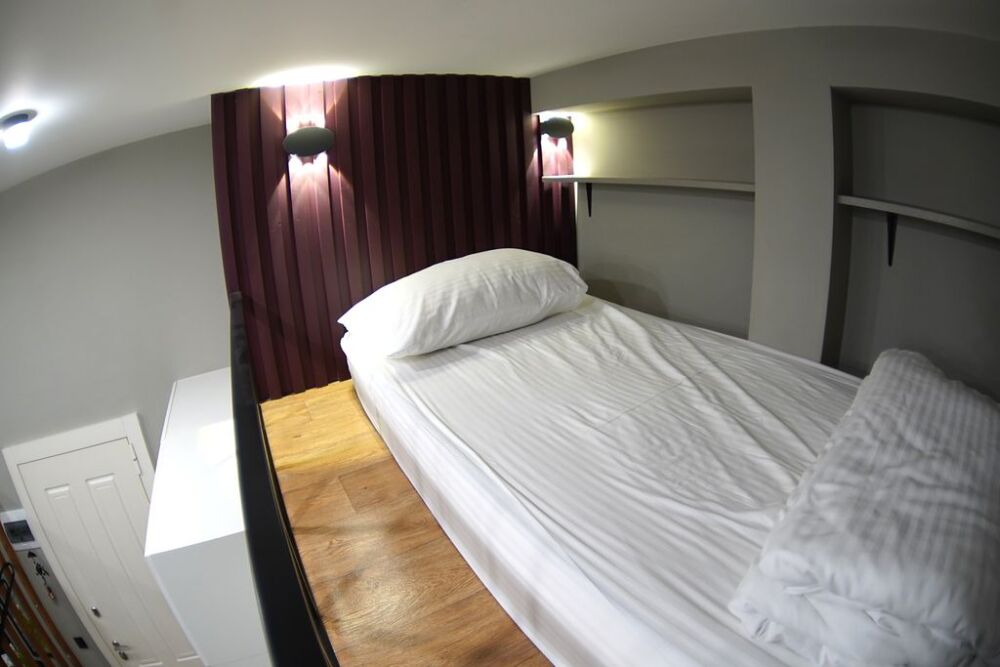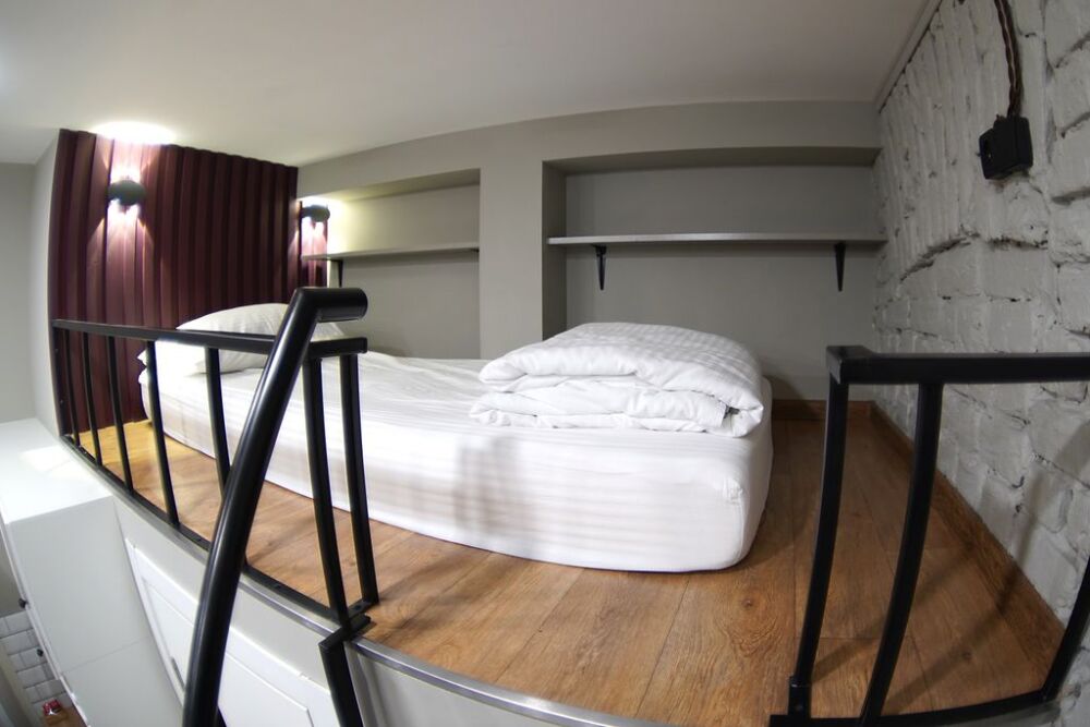 Комфортное проживание для семьи 2 взрослых и 1 ребенок. Двуспальная кровать и удобное, полноценное спальное место на верхнем ярусе -дети будут в восторге от возможности провести ночь наверху.