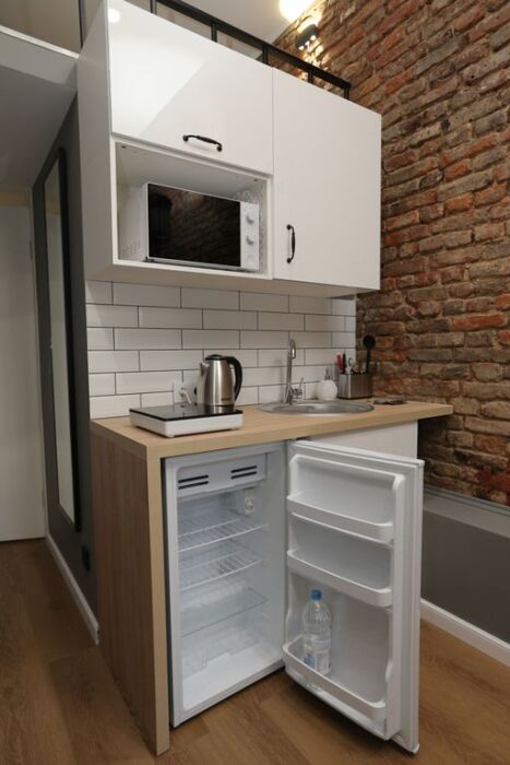 Все апартаменты оснащены всем необходимым для комфортного проживания - мини-кухней с необходимой посудой, туалетной комнатой. В апартаменте есть холодильник, микроволновая печка, электрическая плитка. В каждом номере есть телевизор, фен, туалетные принадлежности, полотенца, постельное белье.