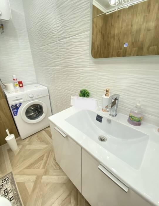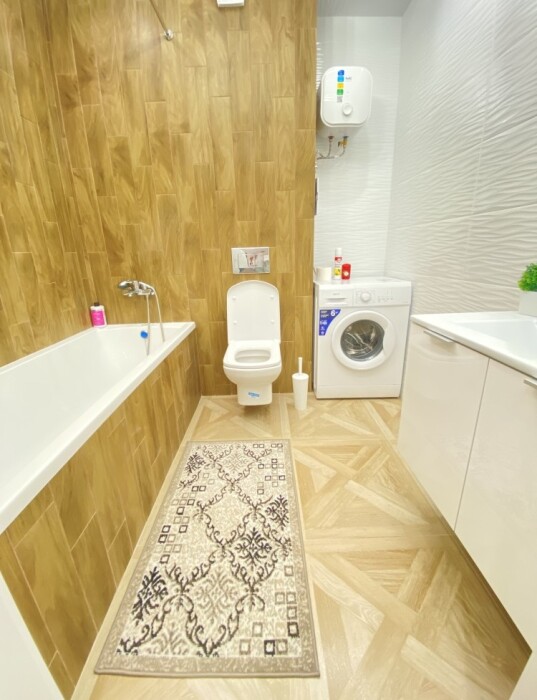 Двуспальная кровать, раскладной диван, Smart TV телевизор, Wi-Fi, полностью оборудованная кухня: плита, чайник, холодильник, вся необходимая посуда и принадлежности. Стиральная машина, утюг, фен. Чистое постельное бельё.
