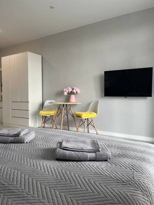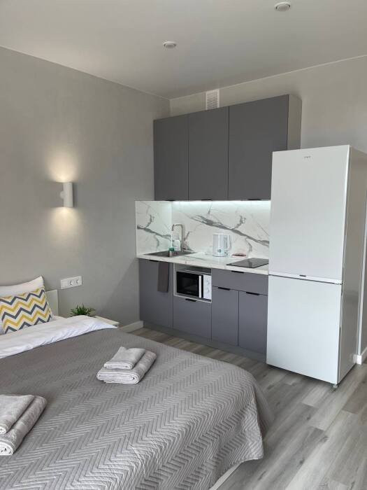 Комфортная и уютная студия. В пешей доступности расположены одни из лучших достопримечательностей нашего города: Верхнее озеро, парк «Юность», Музей янтаря, Королевские ворота, а также ресторанный комплекс Резиденция Королей.