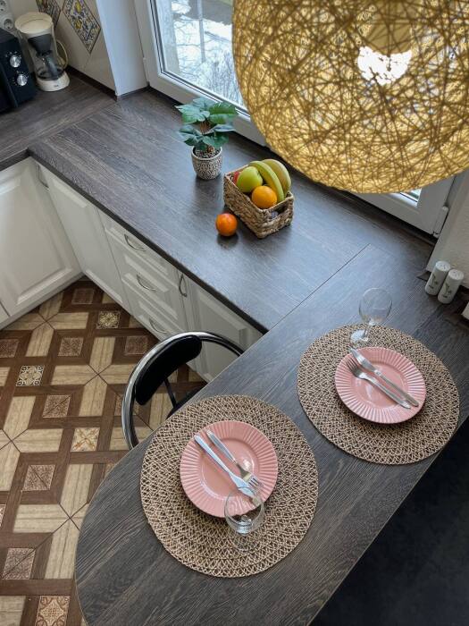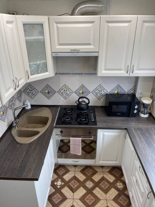•Кухня оснащена: кофеварка, холодильник, микроволновка, установлен фильтр для воды. Чай,кофе, соль,сахар всегда в наличии.