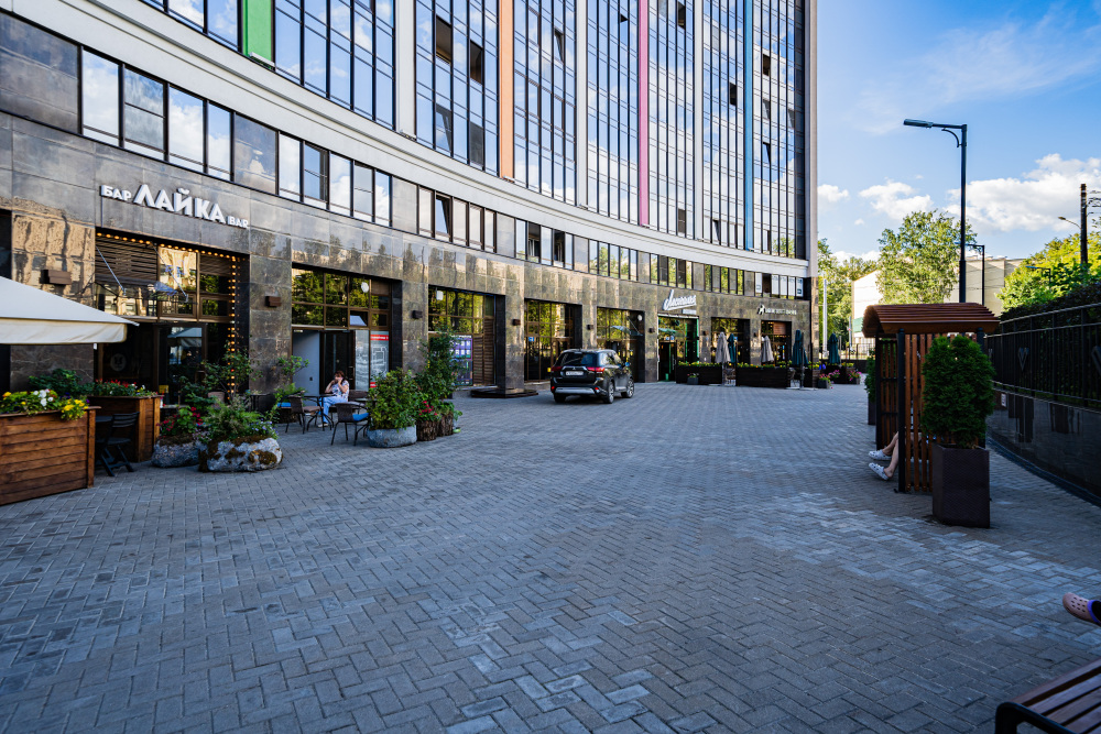 На первом этаже комплекса находится ресторан, кафе правильного питания и фитнес-центр с бассейном.